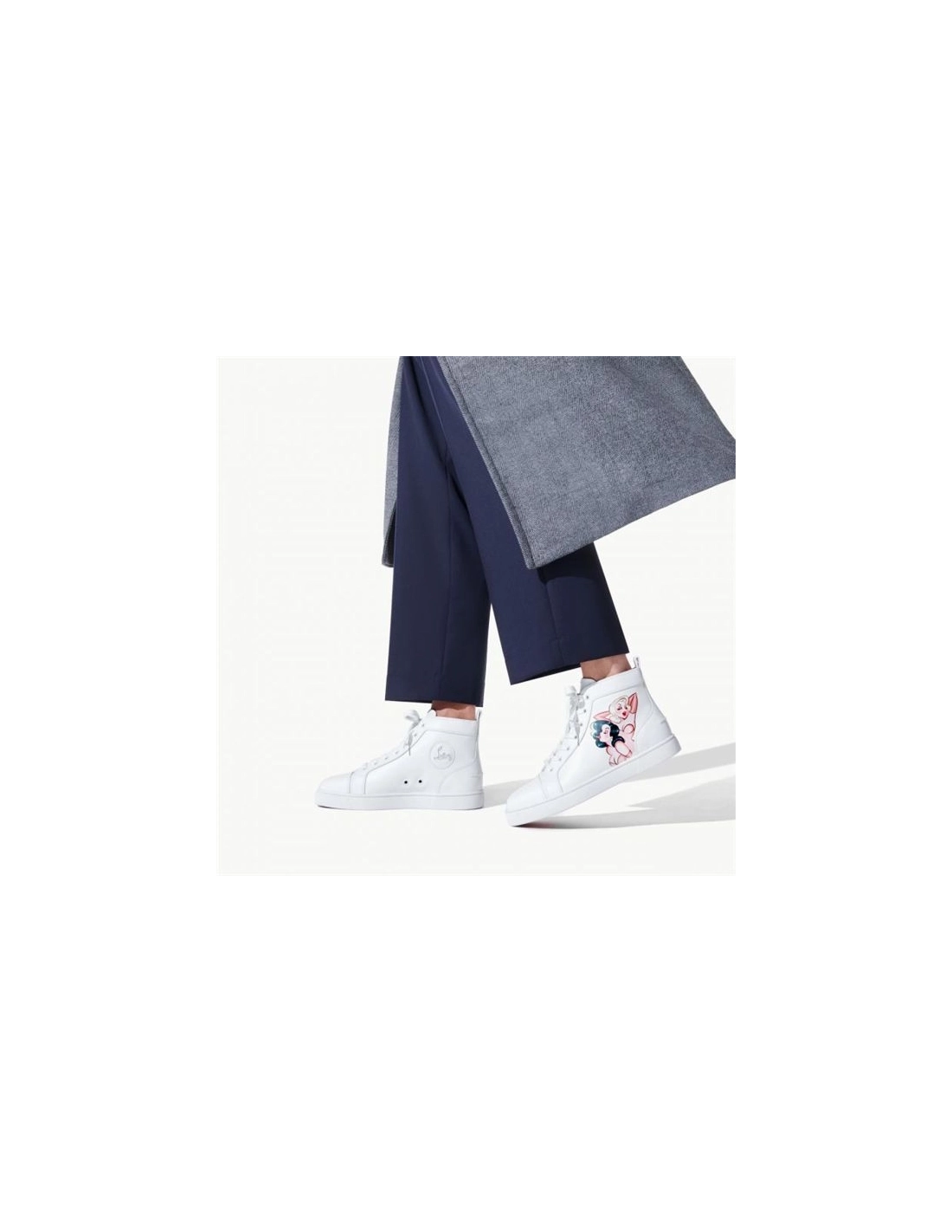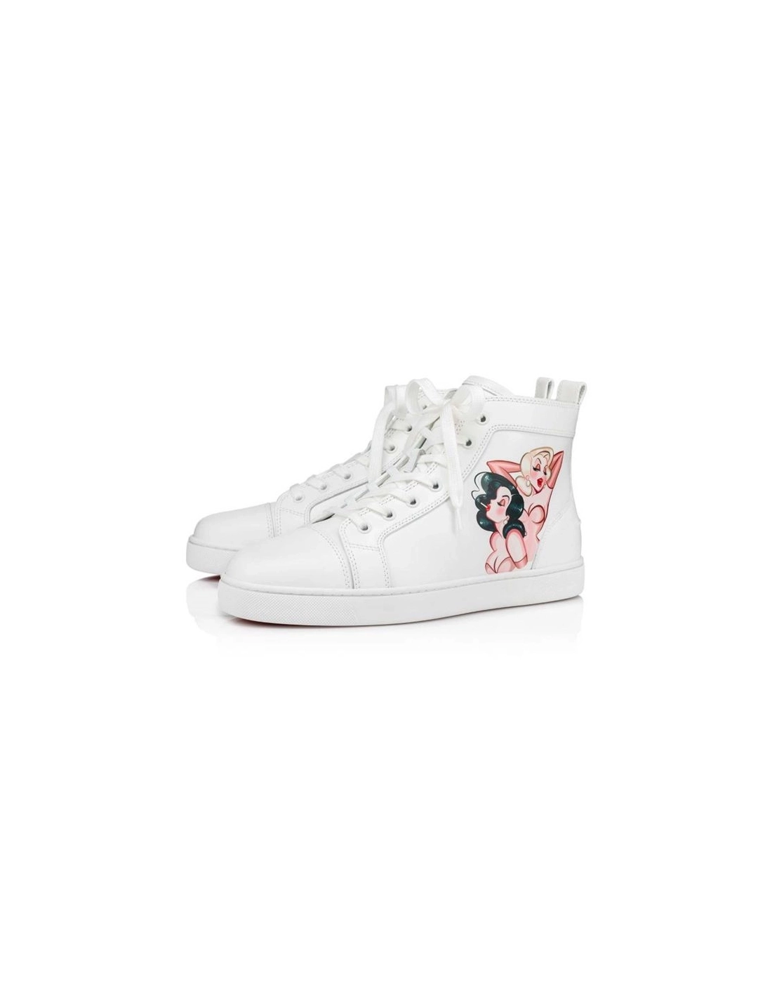 The Loupin Up high-top sneaker is an iconic model by Maison Christian Louboutin and features a white rubber sole. The slender vamp, with sleek lines, is entirely crafted in white calfskin leather featuring a capsule motif representing retro pin-ups as an ode to the femininity which is so dear to the designer. This Christian Louboutin High-top Loupin Up White Calf shoe is enhanced by delicate finishes and discreet topstitching and offers timeless elegance.Color :BIANCO/BIANCO-MULTIMaterial :CALFCollection : Summer 22