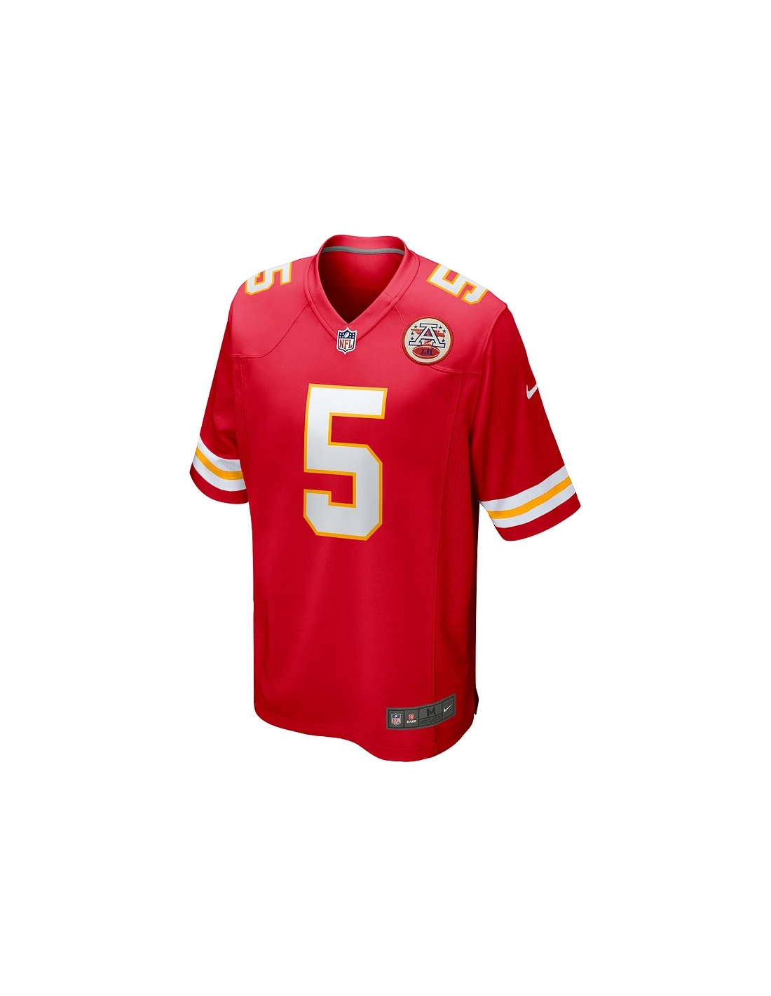 Sewn-on NFL Shield at collar and satin twill woven jock tag at hem