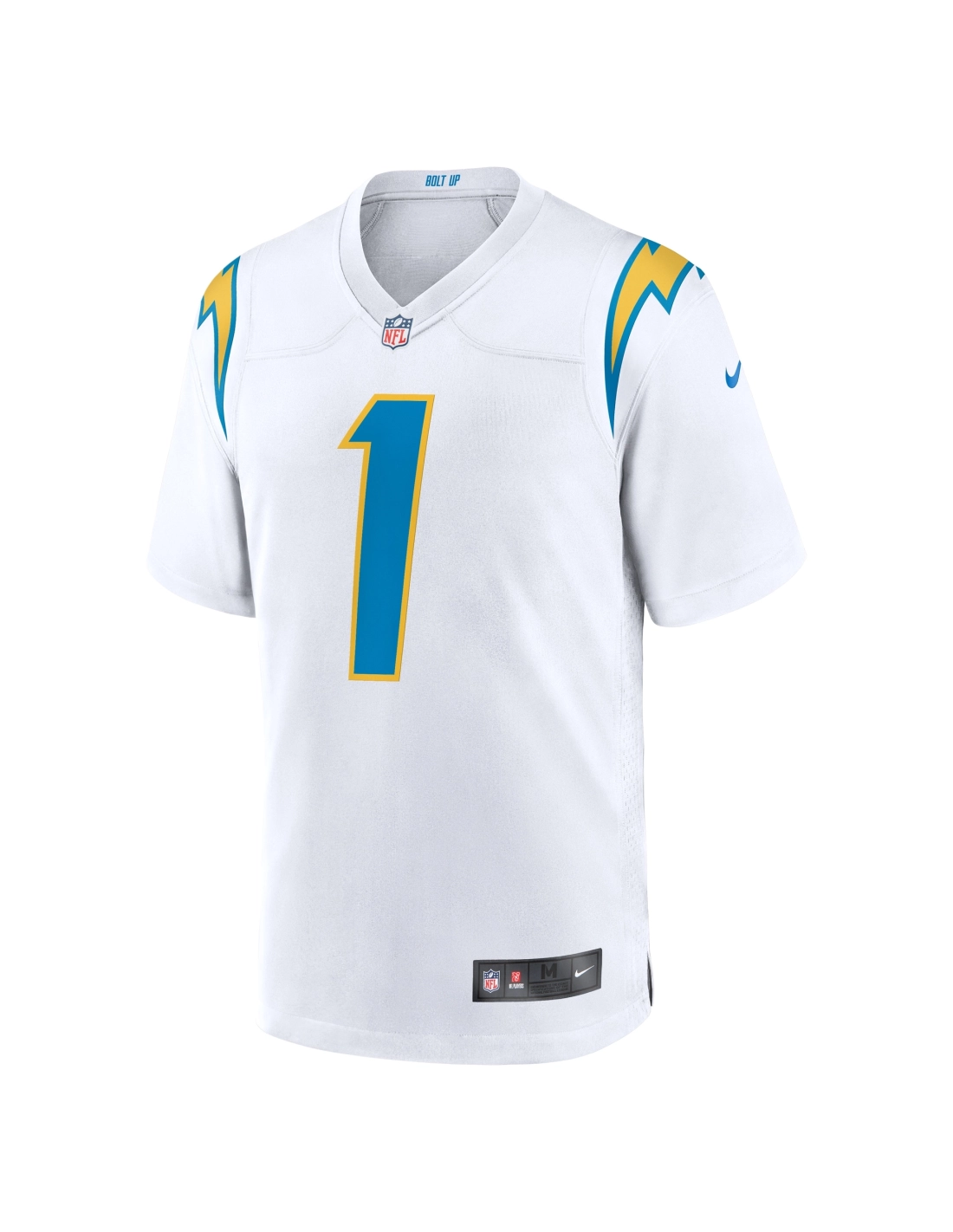 Sewn-on NFL Shield at collar and satin twill woven jock tag at hem