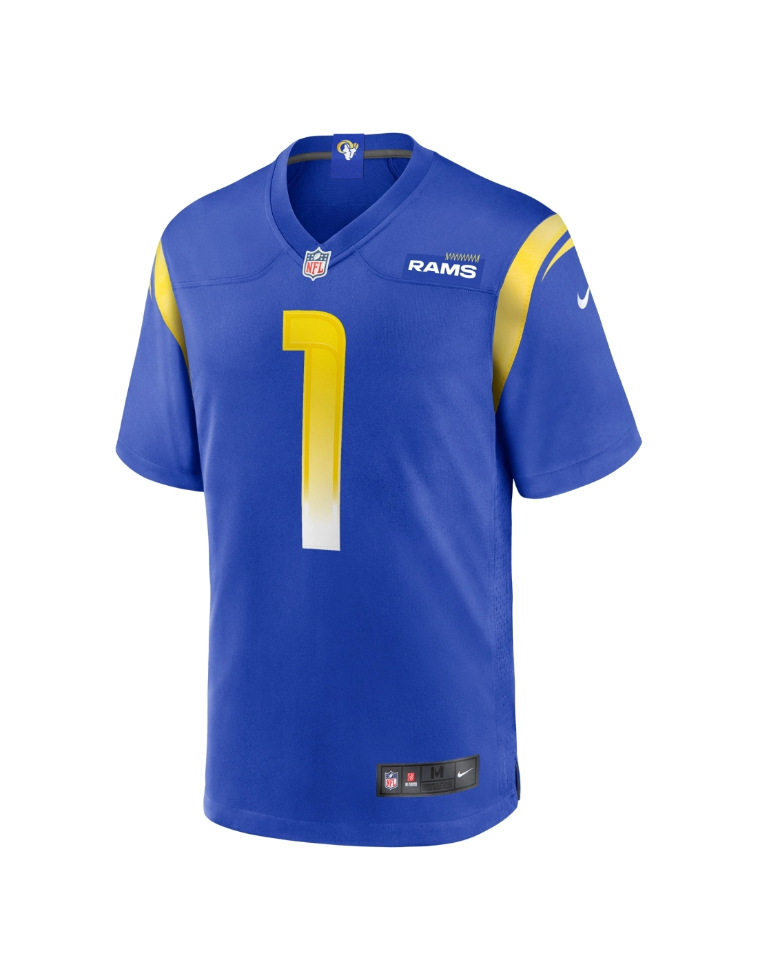 Sewn-on NFL Shield at collar and satin twill woven jock tag at hem