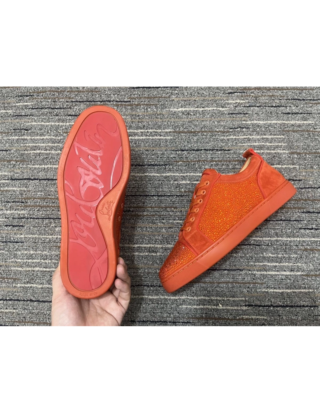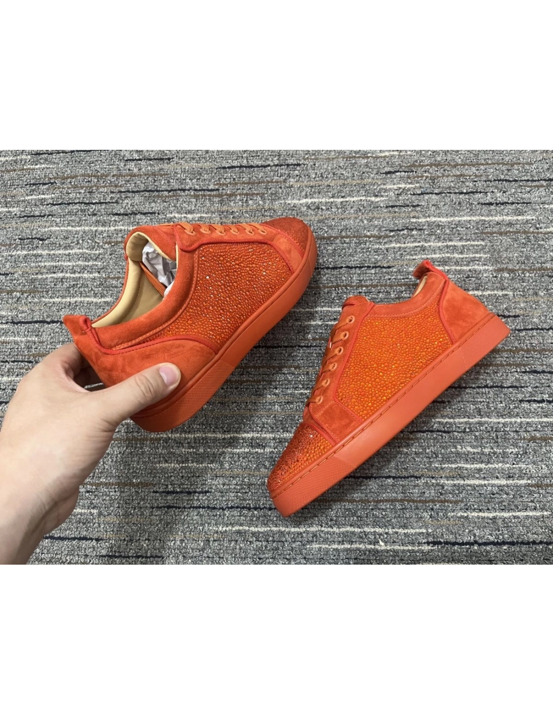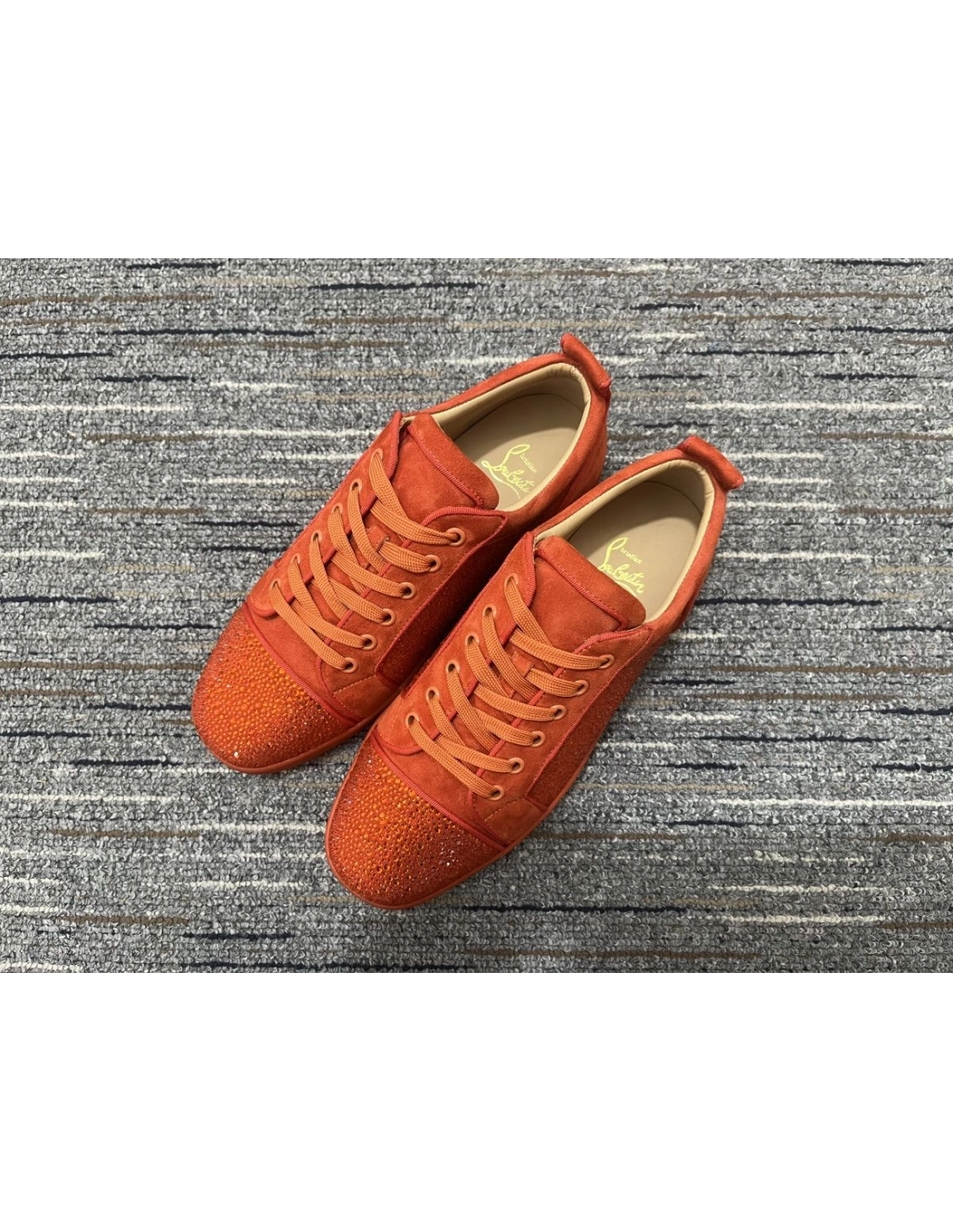 Christian Louboutin Louis Junior Strass Sneakers Suede Leather Orange