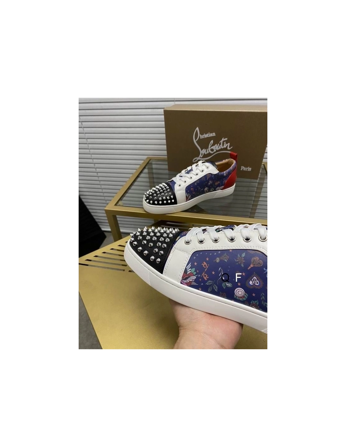 Christian Louboutin Louis Junior Spikes Sneakers Floral Print Leather Multicolor