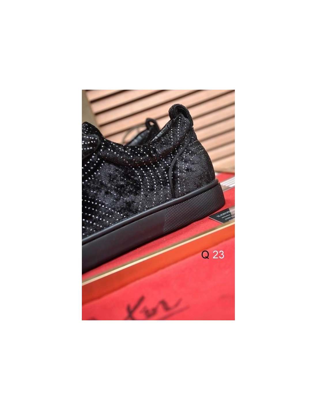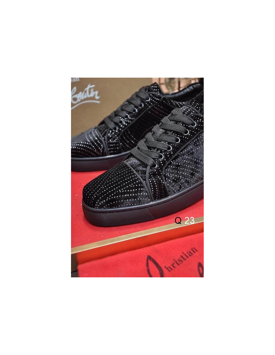 Christian Louboutin Louis Junior Orlato Sneakers Velvet River Crystals Black
