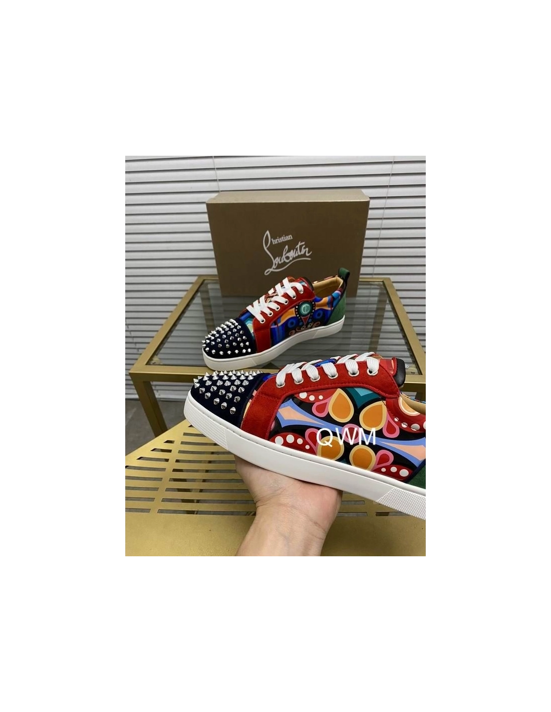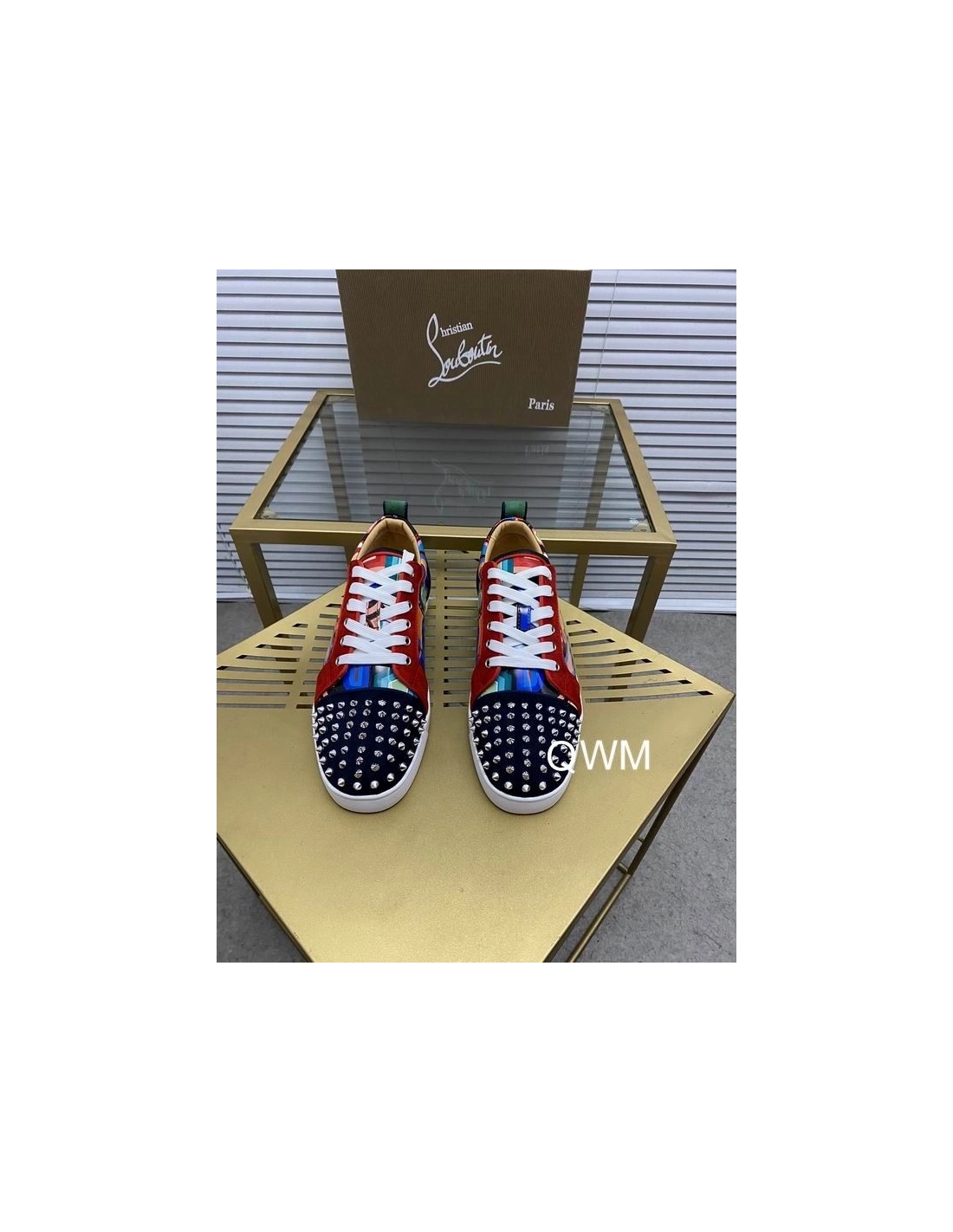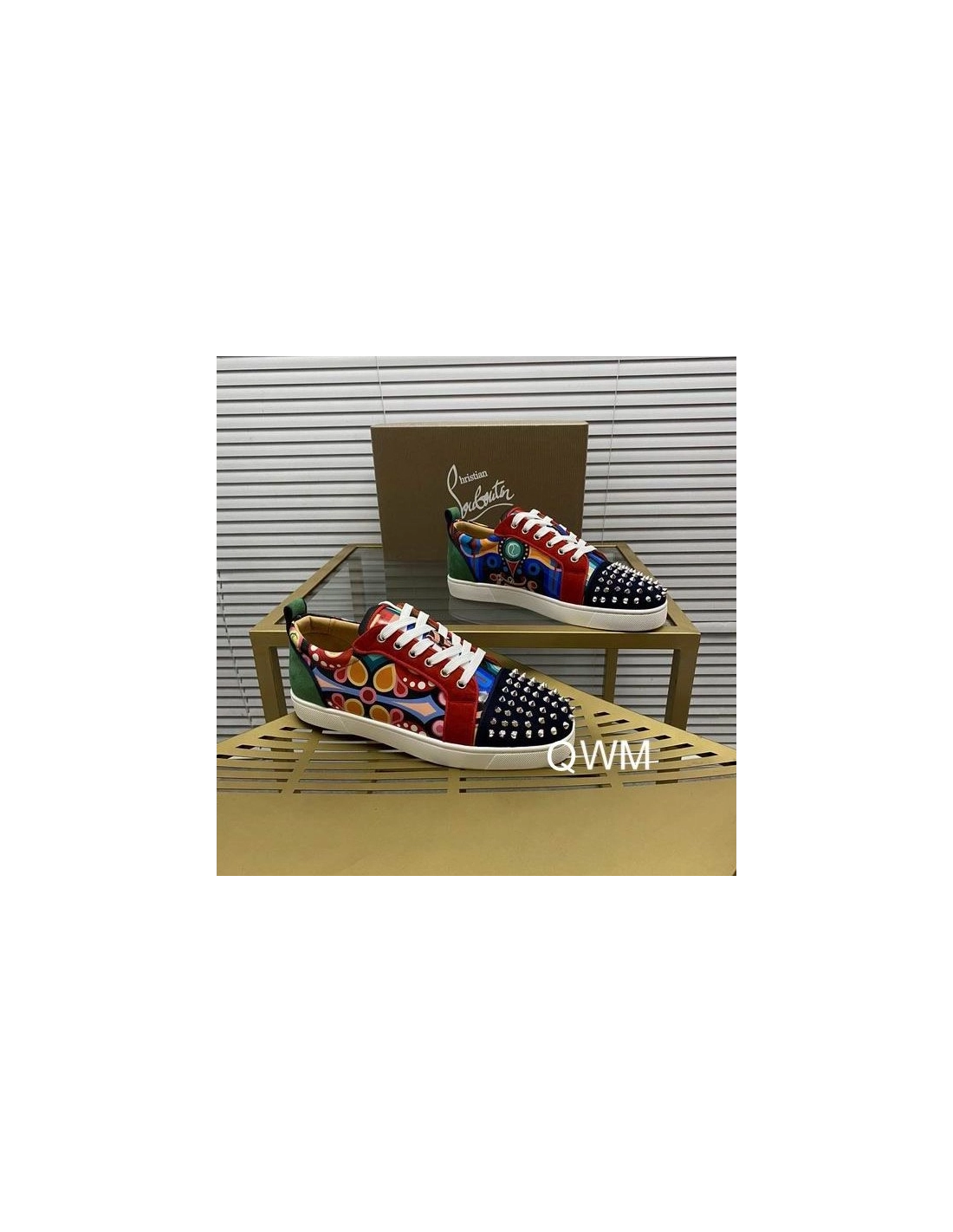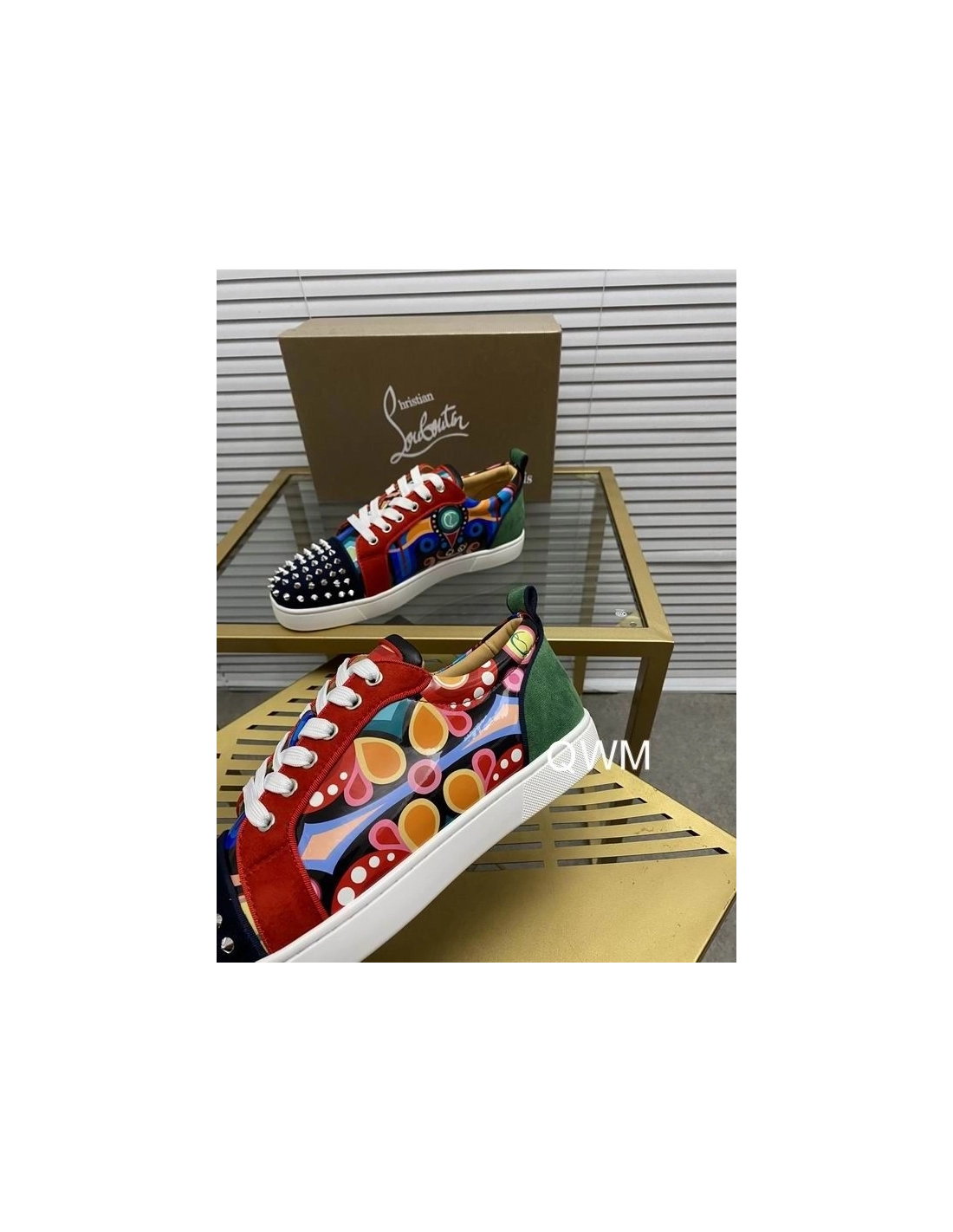 Christian Louboutin Louis Junior Spikes Orlato Flat Sneakers Suede Multicolor