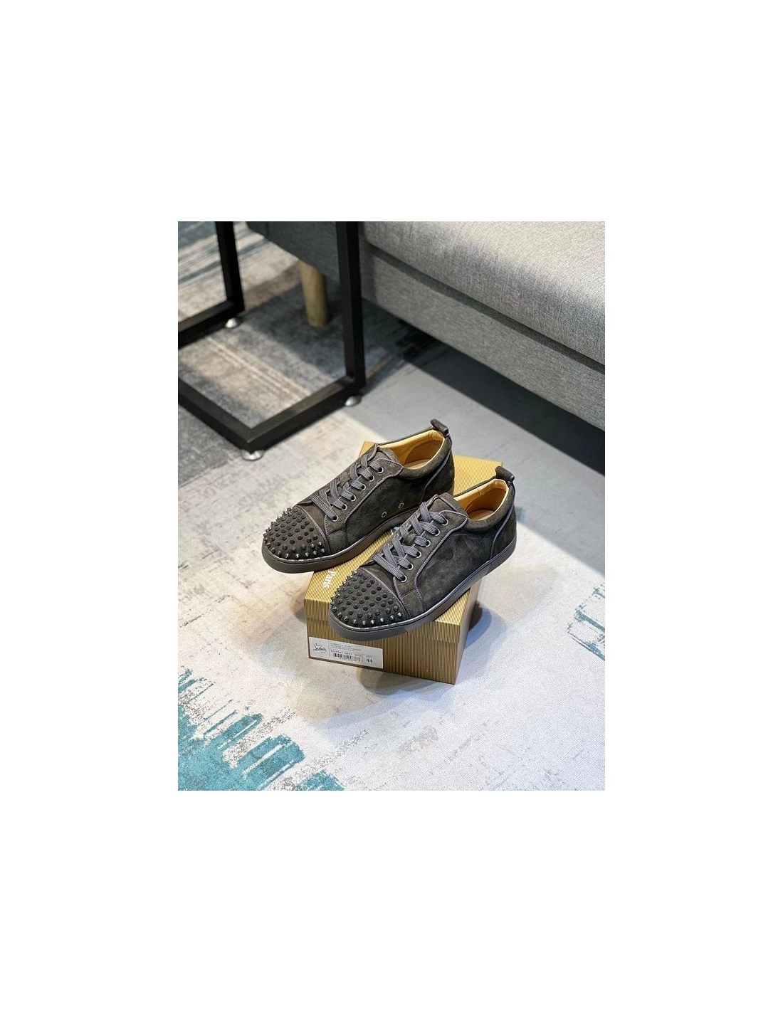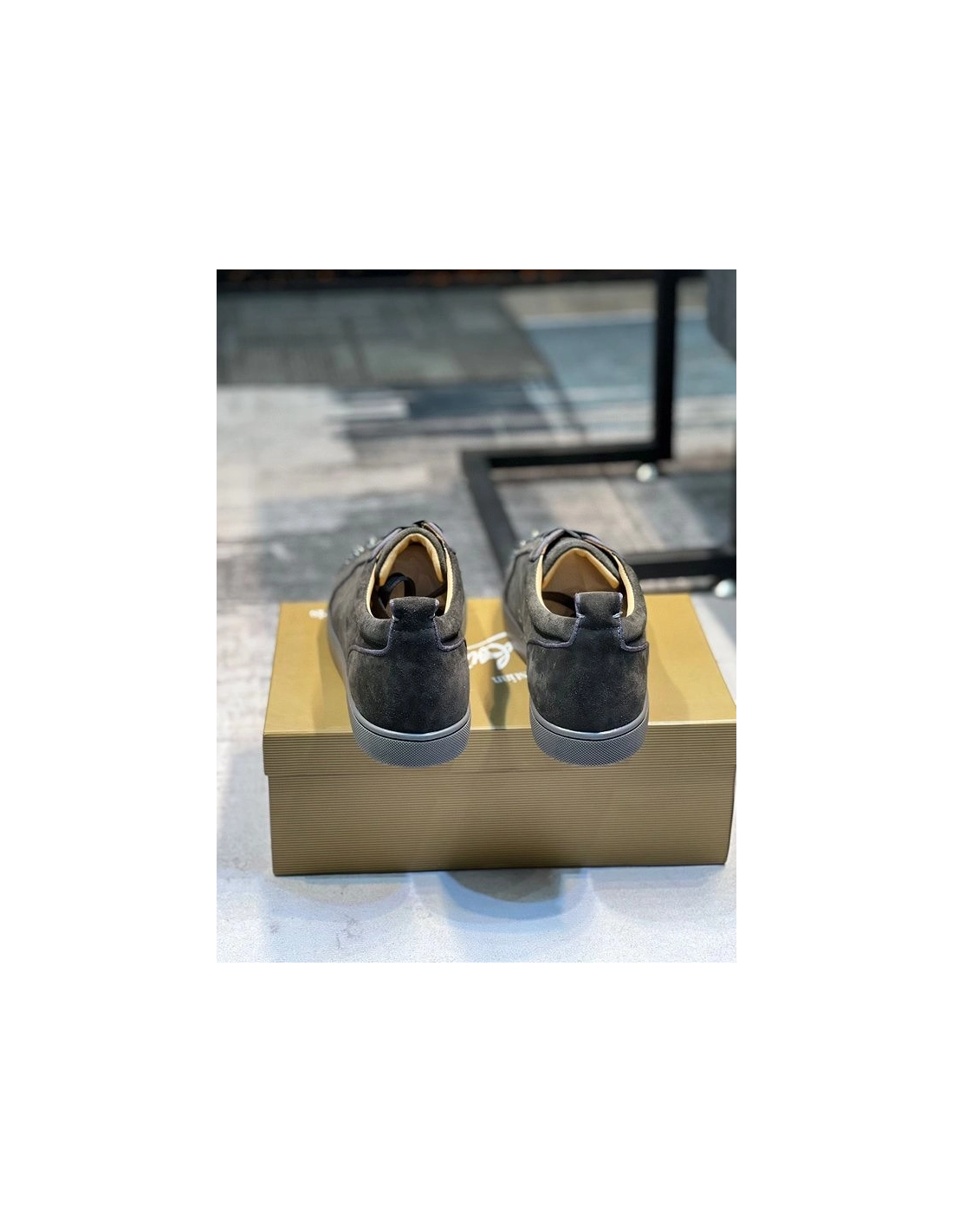 Christian Louboutin Louis Junior Spikes Low-top Sneaker Veau Velours Olive