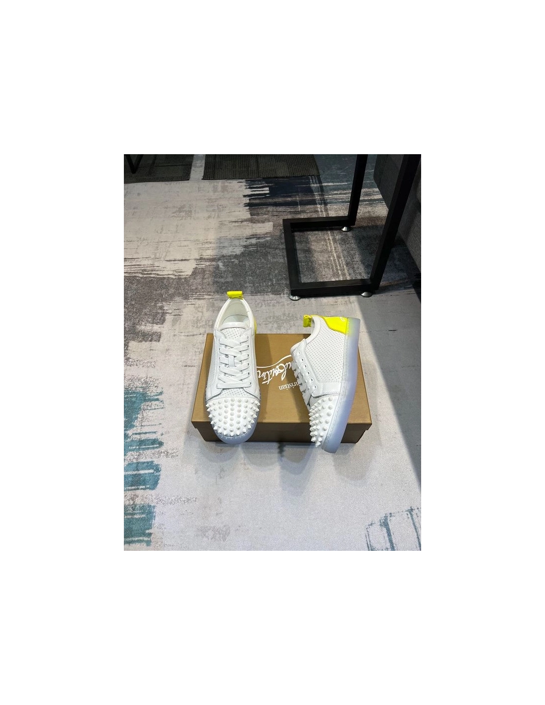 Replica Christian Louboutin Fun Louis Junior Spikes Sneakers White Fluo Yellow
