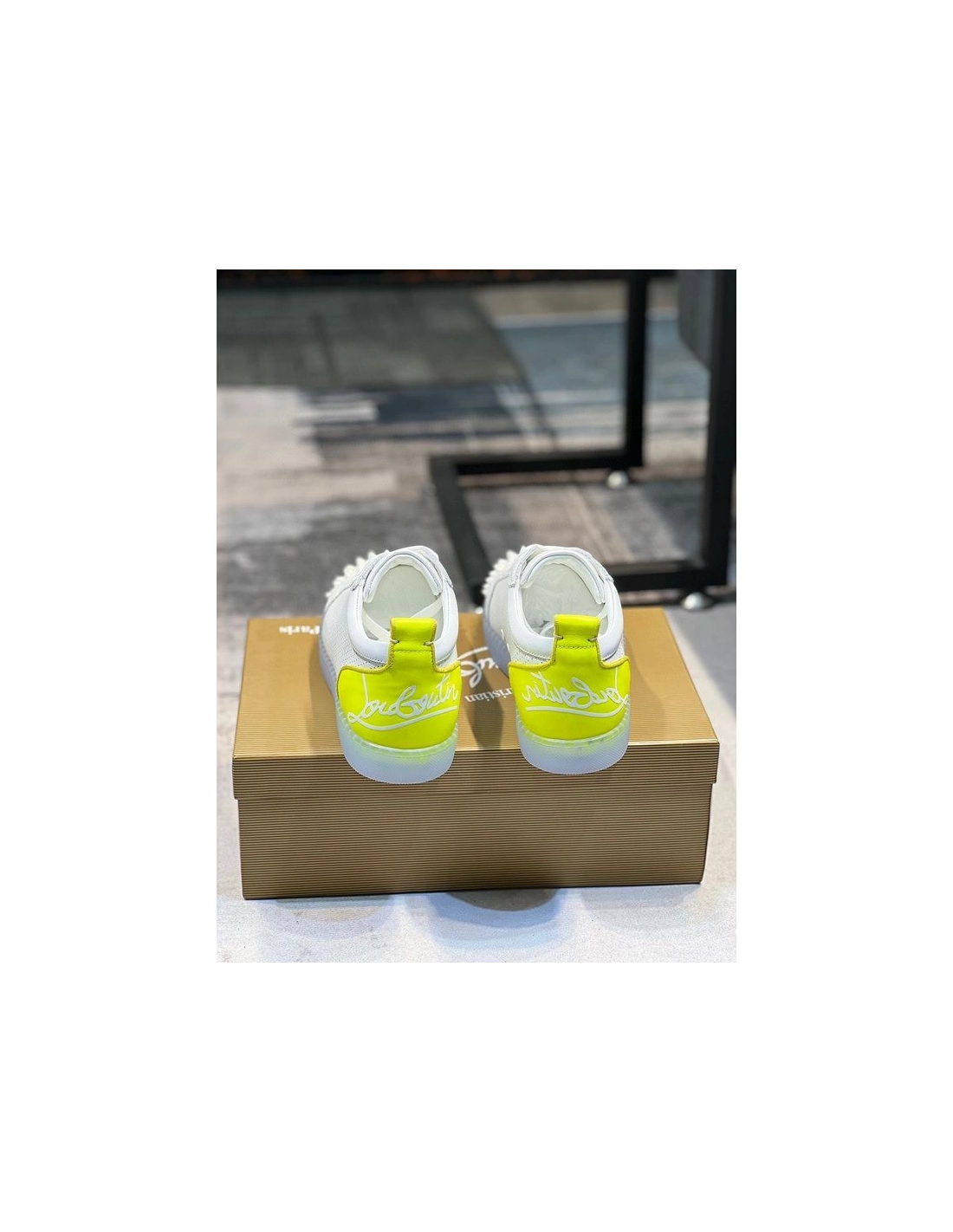 Christian Louboutin Fun Louis Junior Spikes Sneakers White Fluo Yellow