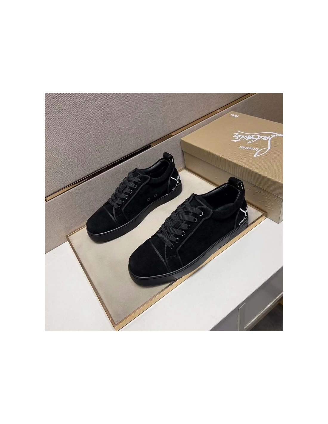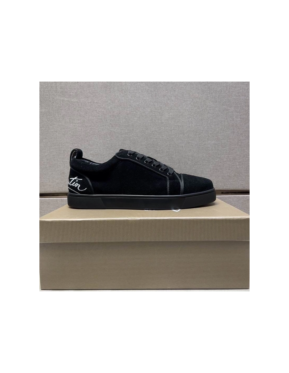 Christian Louboutin Fun Louis Junior Sneakers Low-top Logo Embossed Veau Velours Black