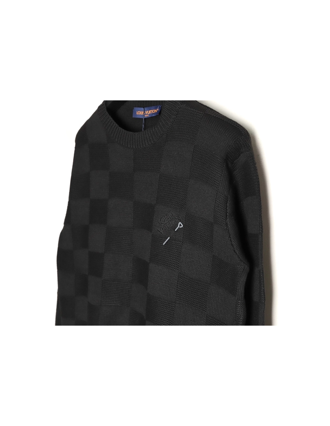 Louis Vuitton safety pin checkered crew neck sweater