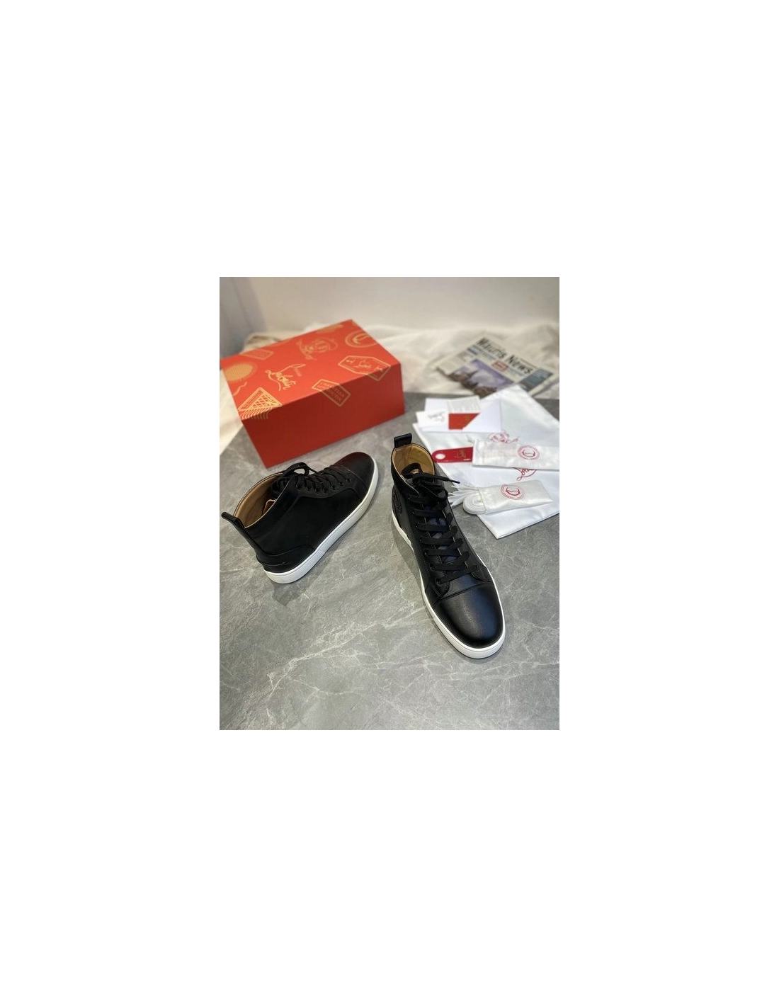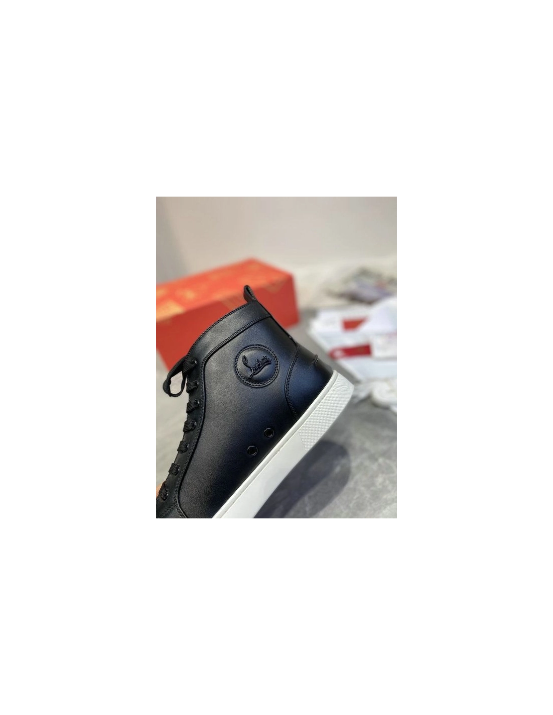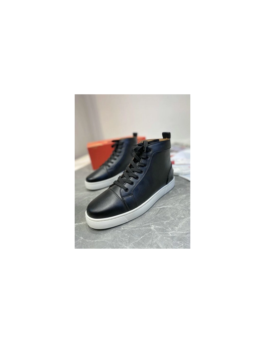 Christian Louboutin Louis Flat High-top Sneakers Calfskin Black White