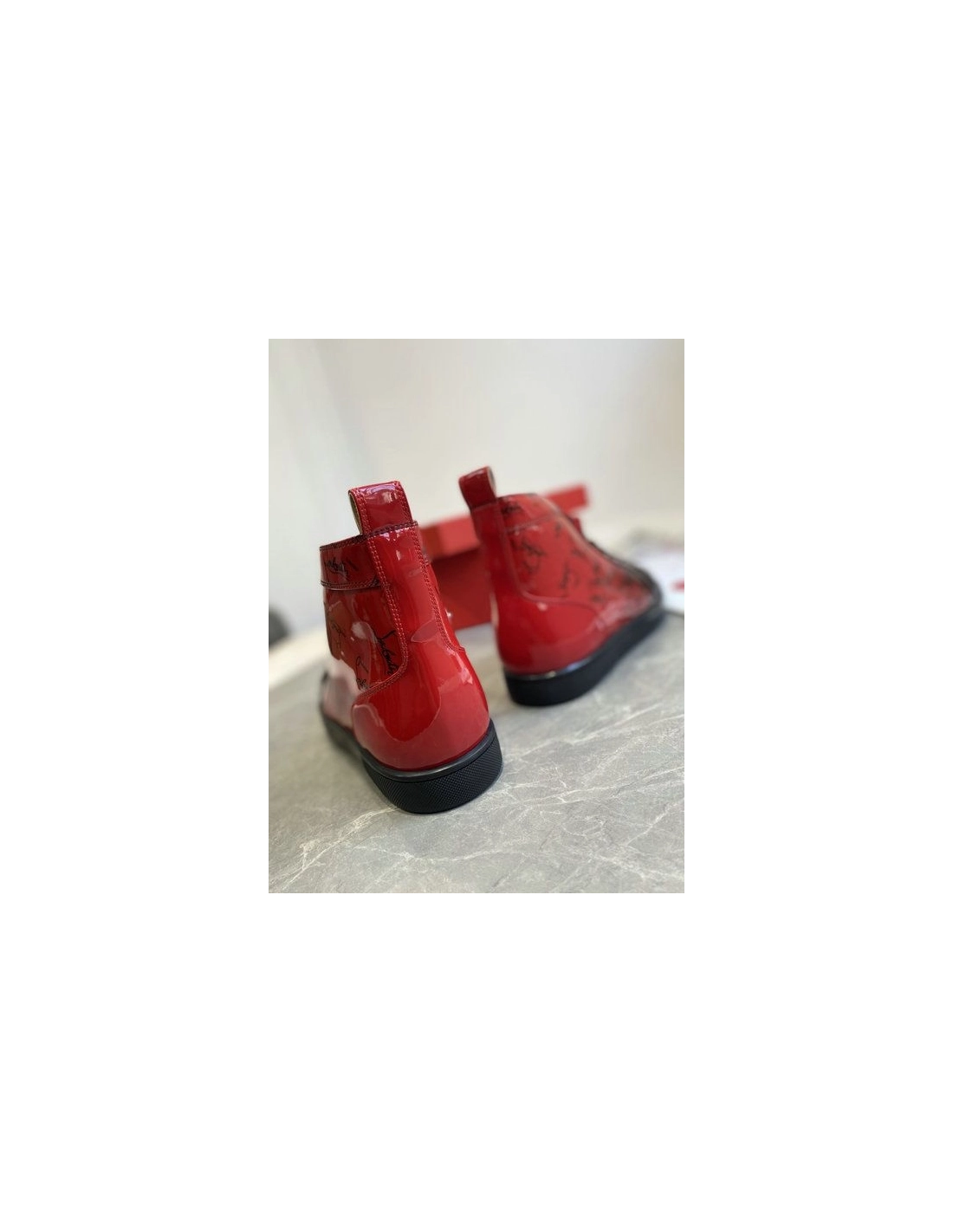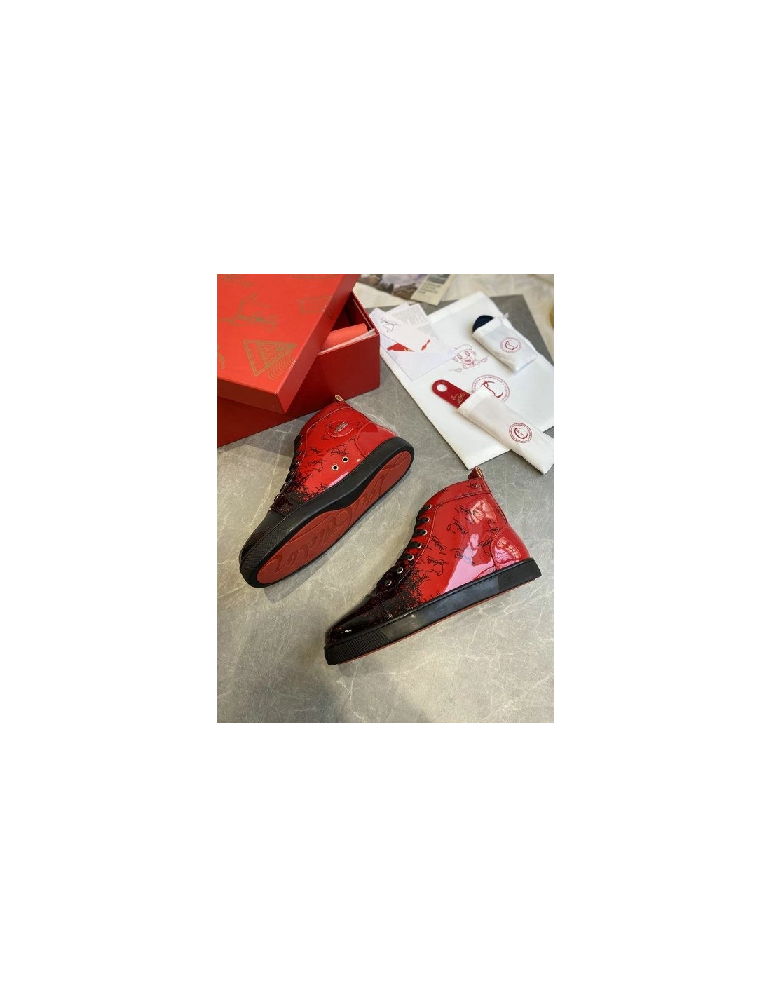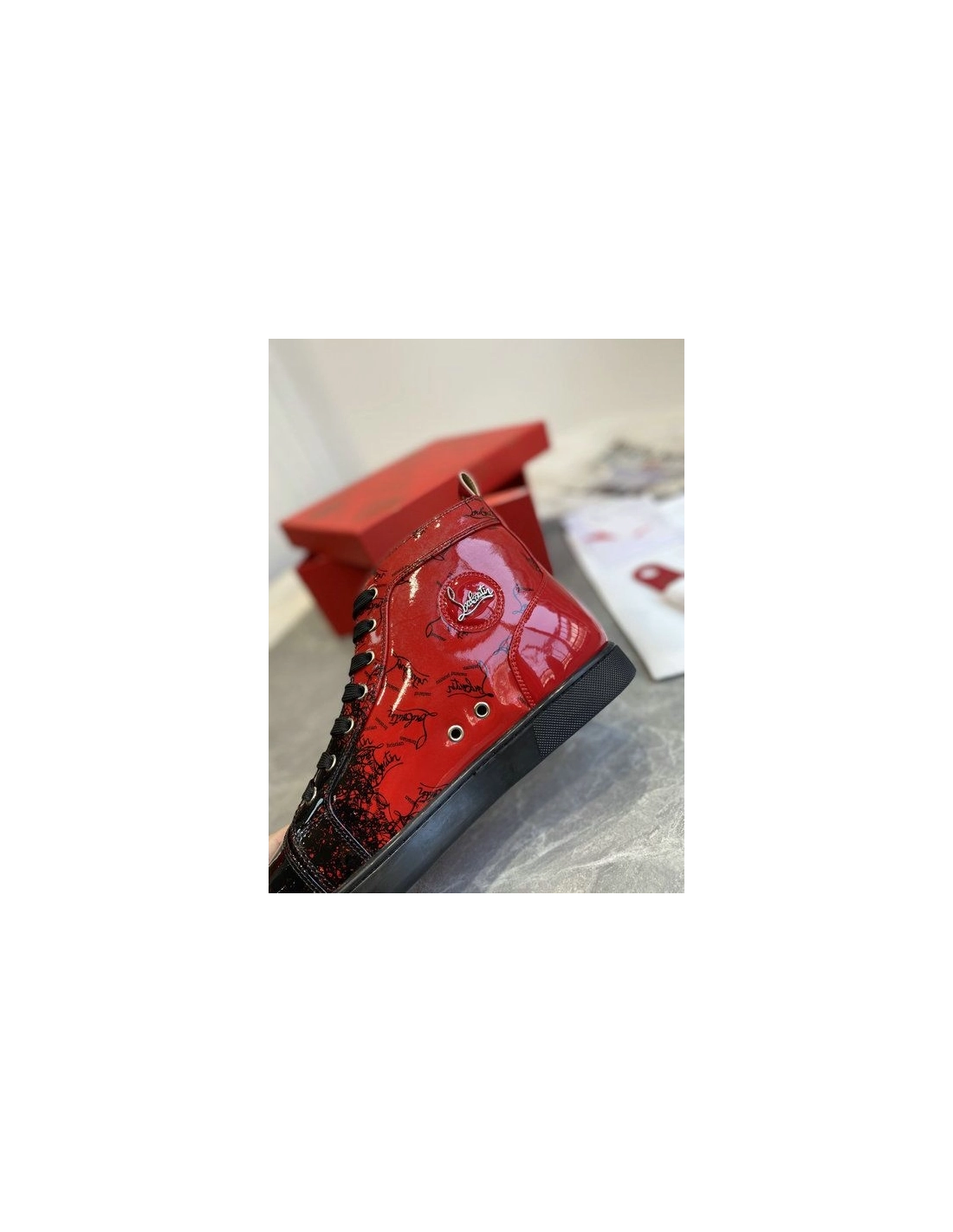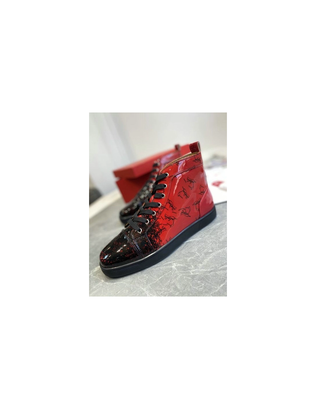 Christian Louboutin Louis Flat Degraloubi High-top Men Sneaker Patent Leather Black Red