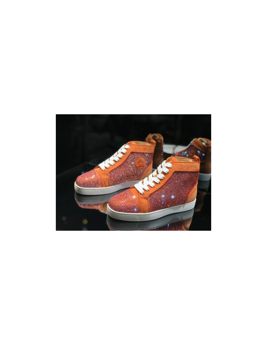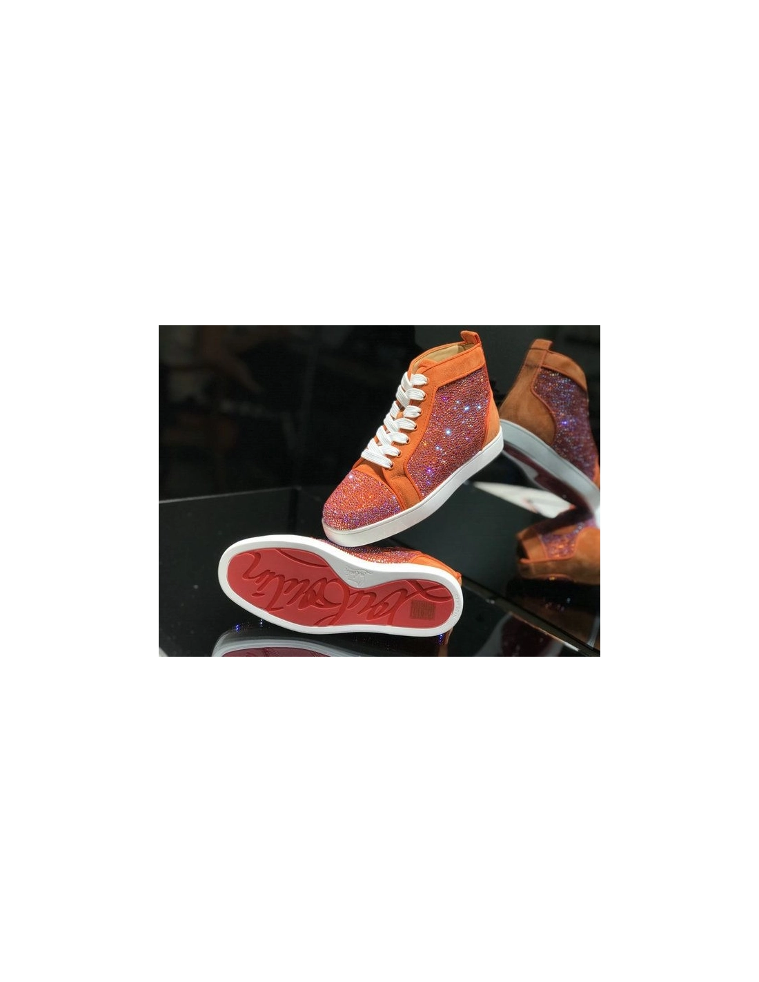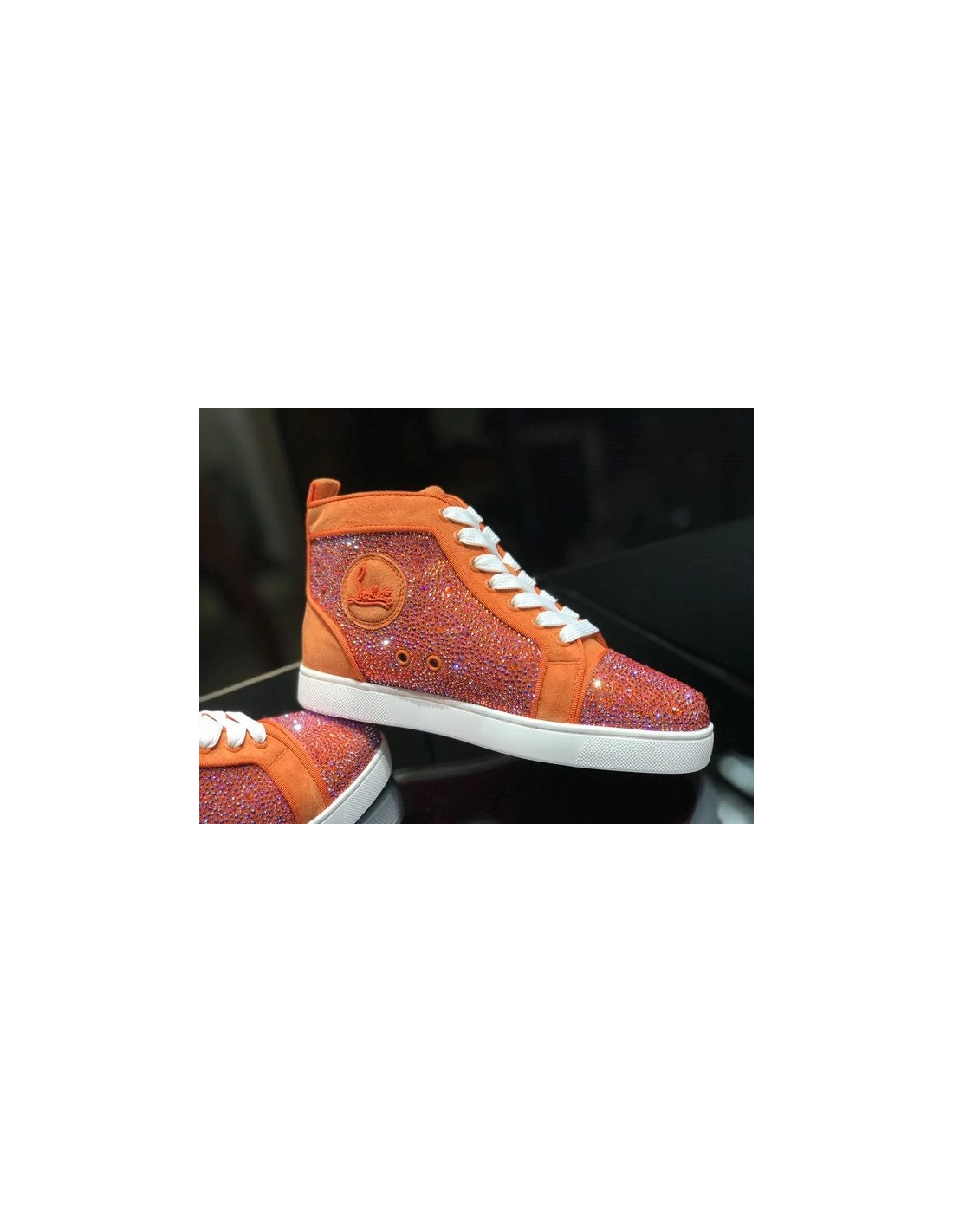 Christian Louboutin Louis Strass High-Top Sneakers Veau Velous and Strass Orange White