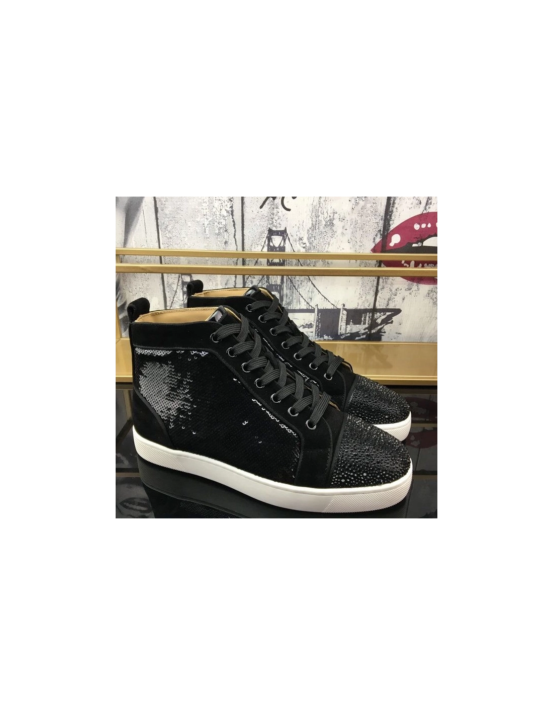 Christian Louboutin Louis Strass Sneakers Veau Velours Sequin Black