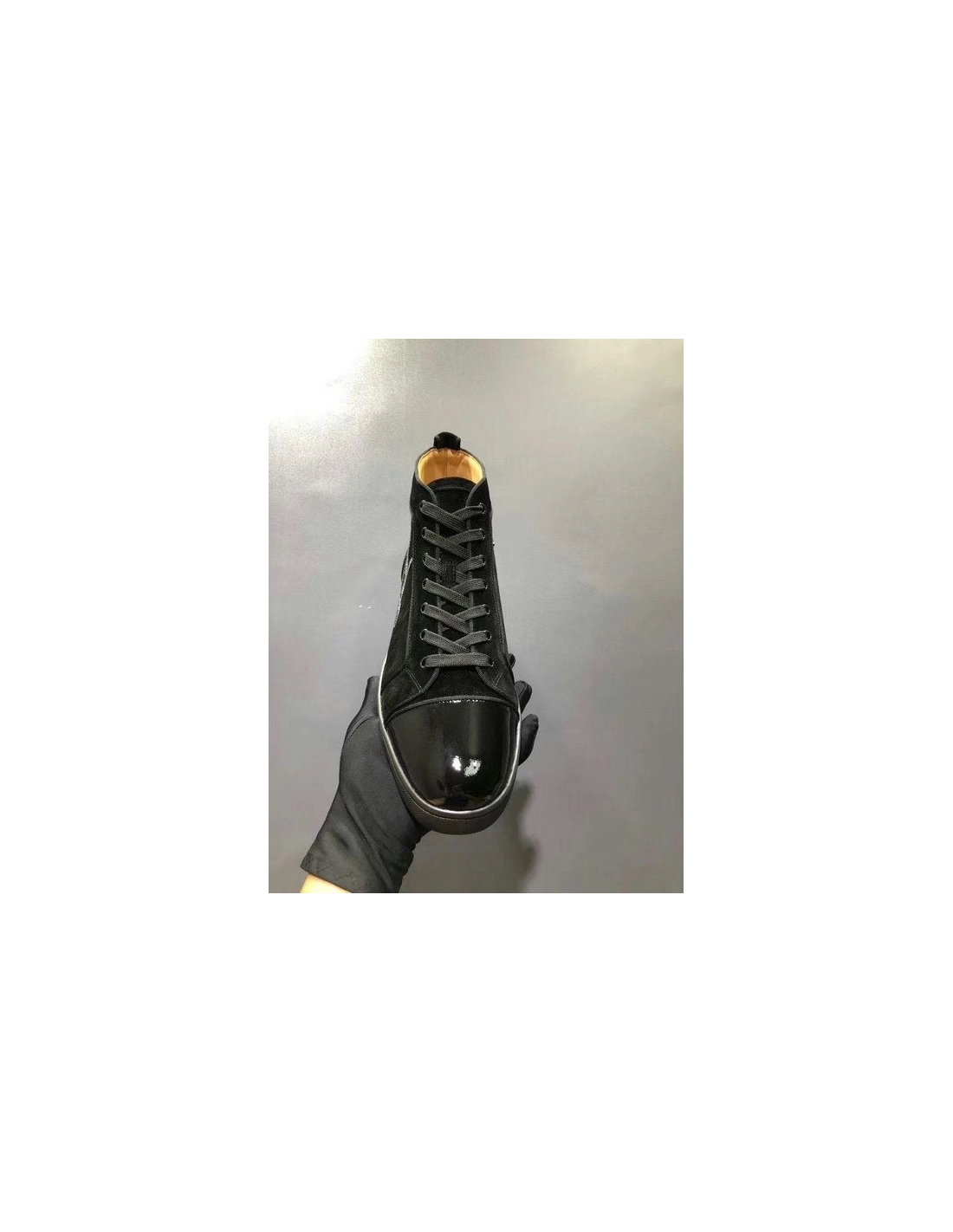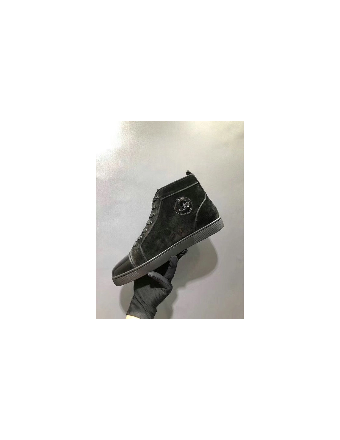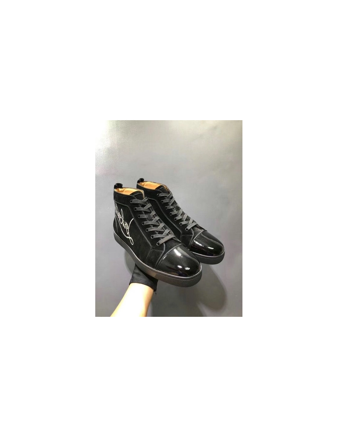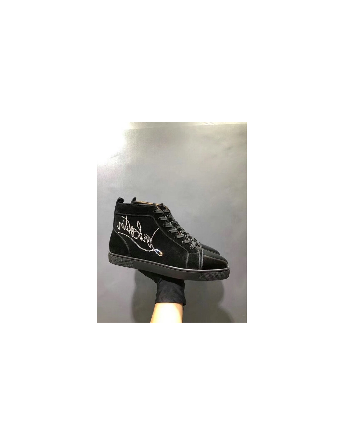 Christian Louboutin Louis Strass Flat High-top Sneakers Suede and Patent Leather Black