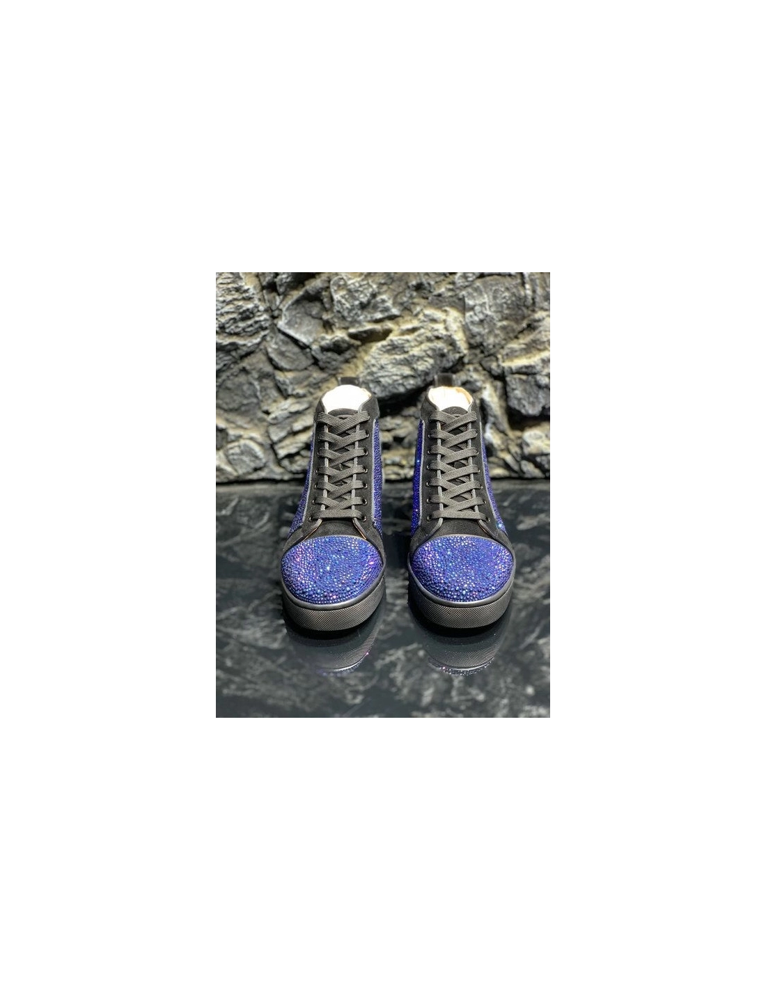 Discount Christian Louboutin Louis Strass High-top Sneakers Suede Black Blue Outlet Online