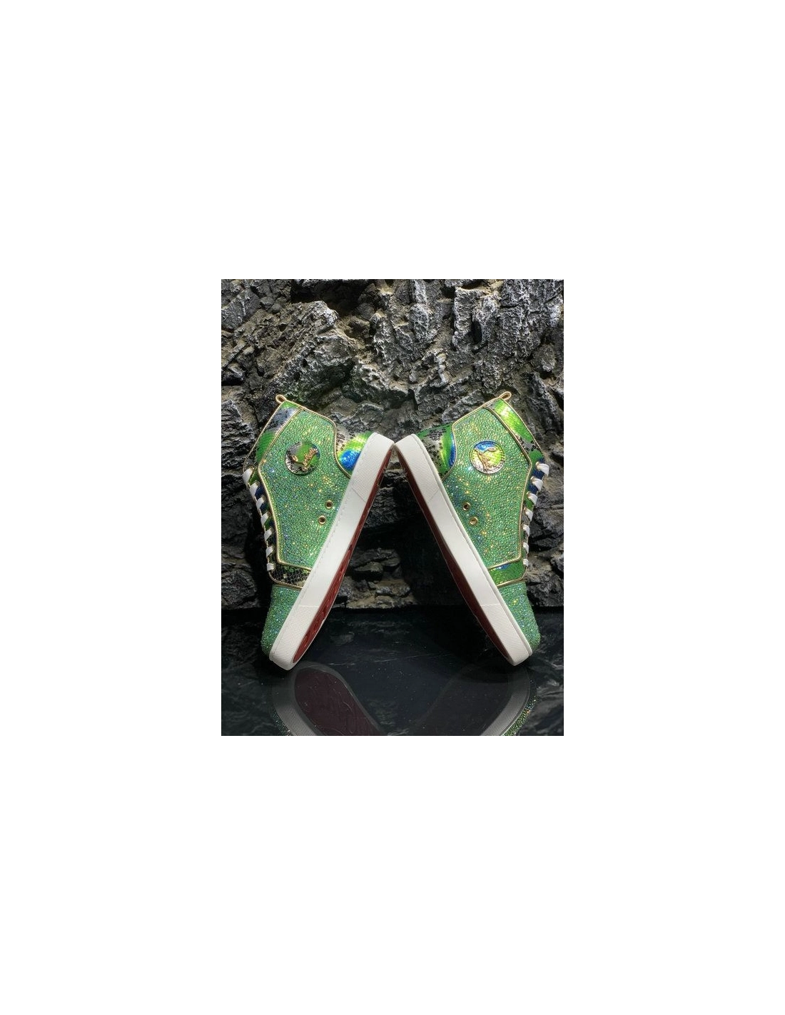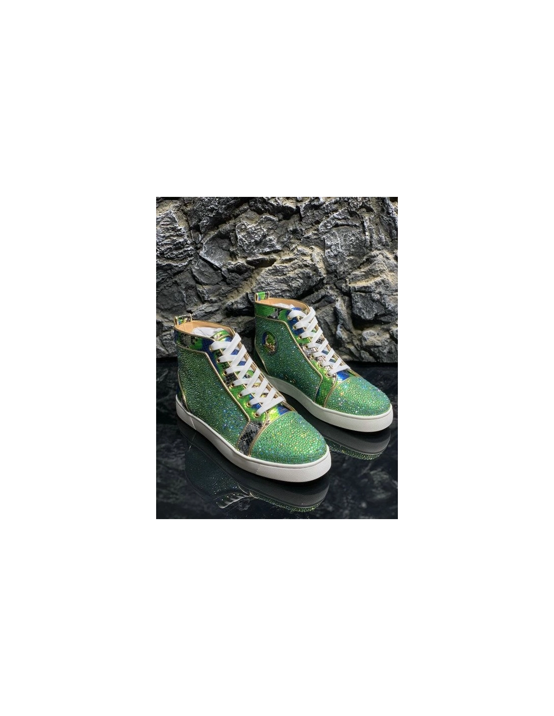 Christian Louboutin Louis Strass High-Top Sneakers Python Roccia Electric Green
