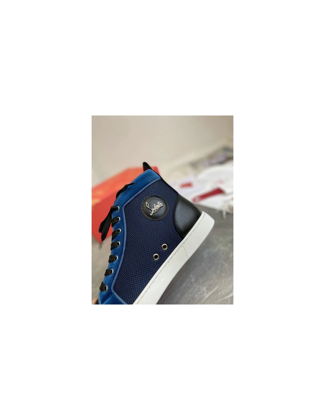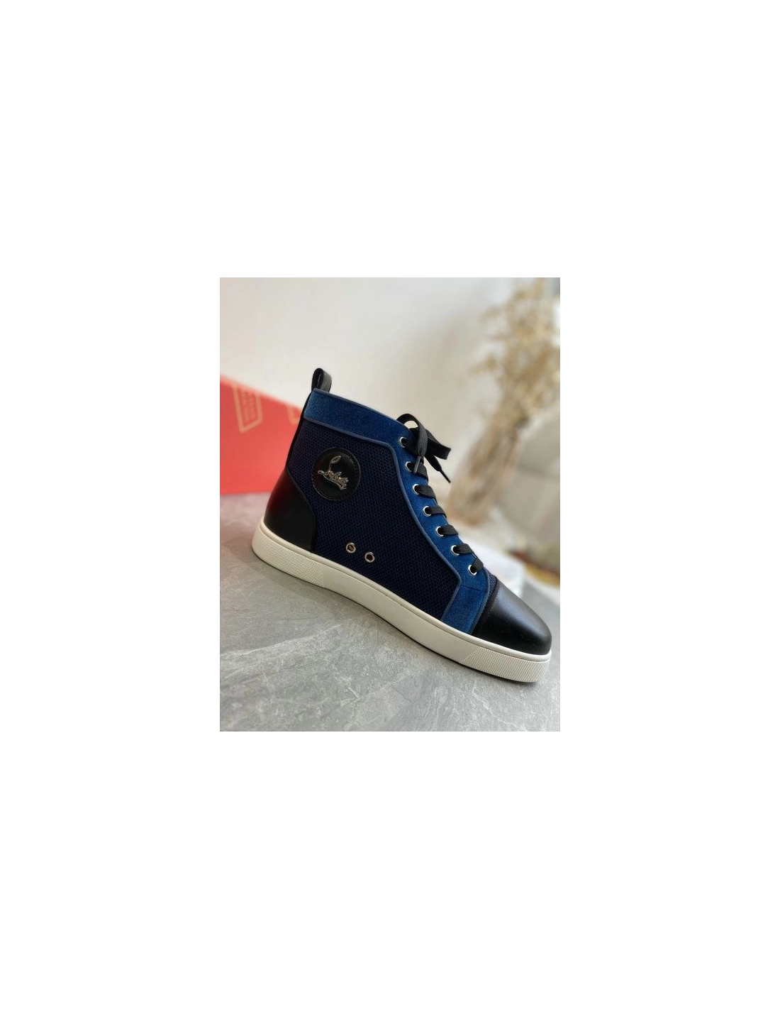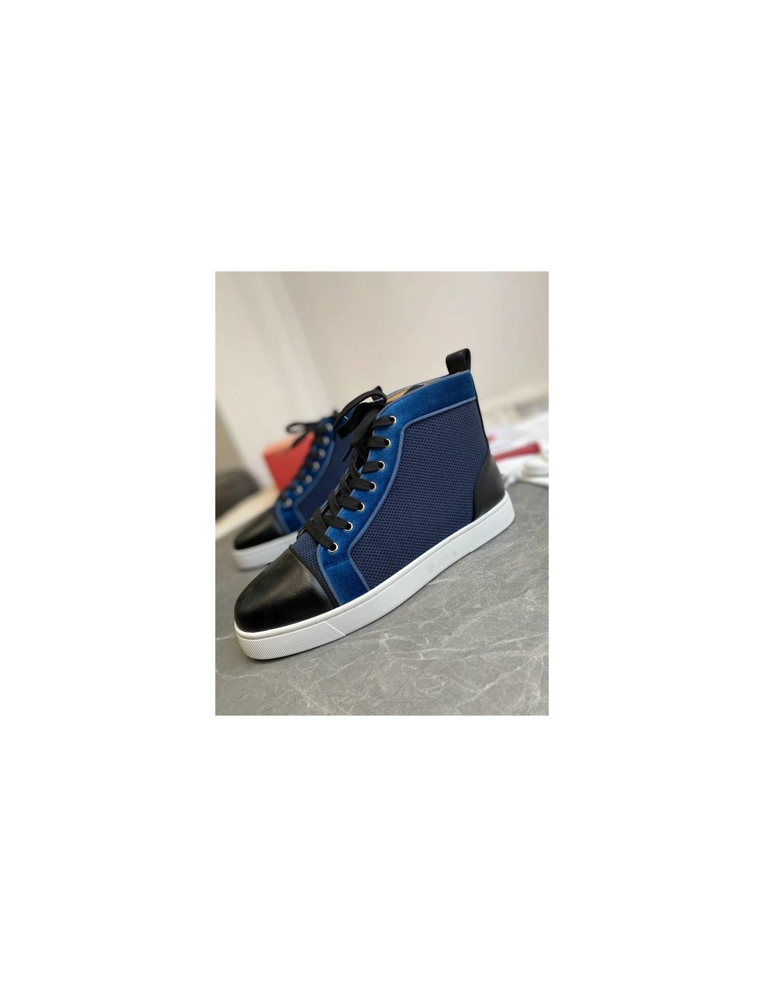 Christian Louboutin Louis High-Top Sneakers Calf Leather and Velvet Black Blue