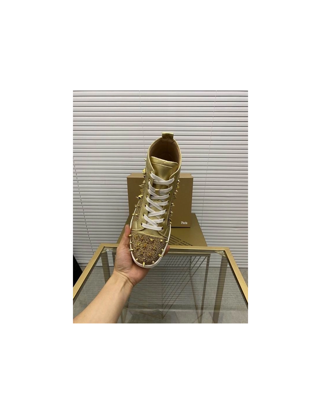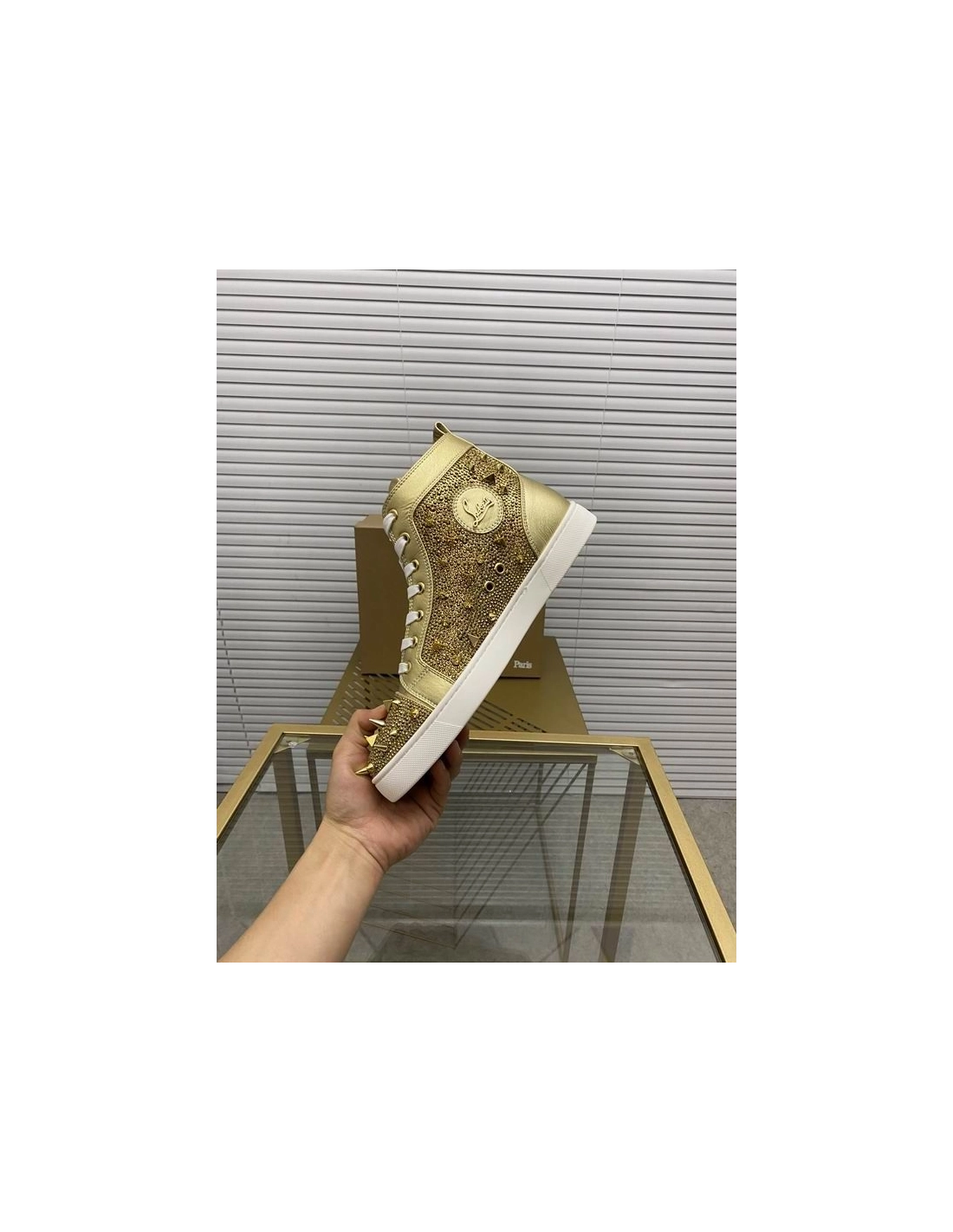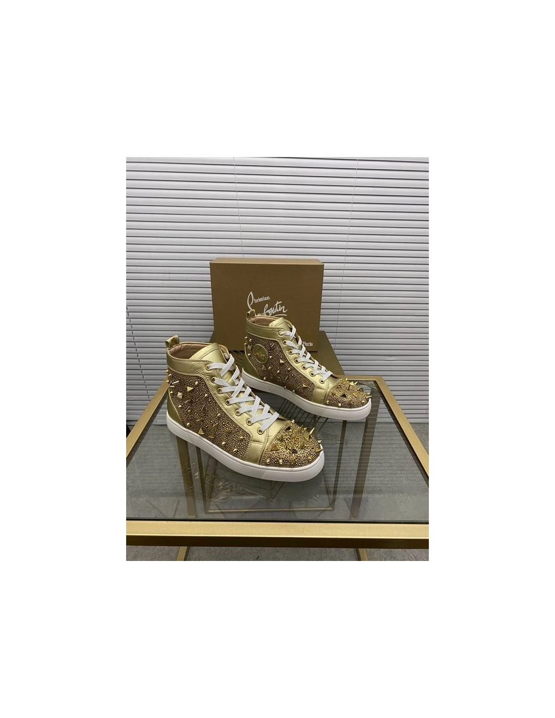 Christian Louboutin Louis Pik Pik Spikes Flat High-top Sneakers Calf Gold