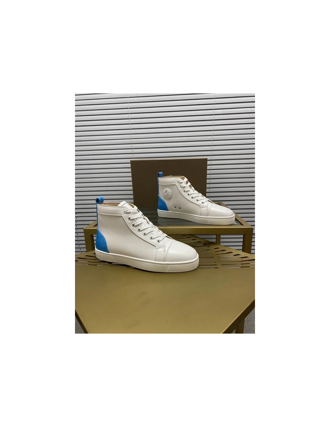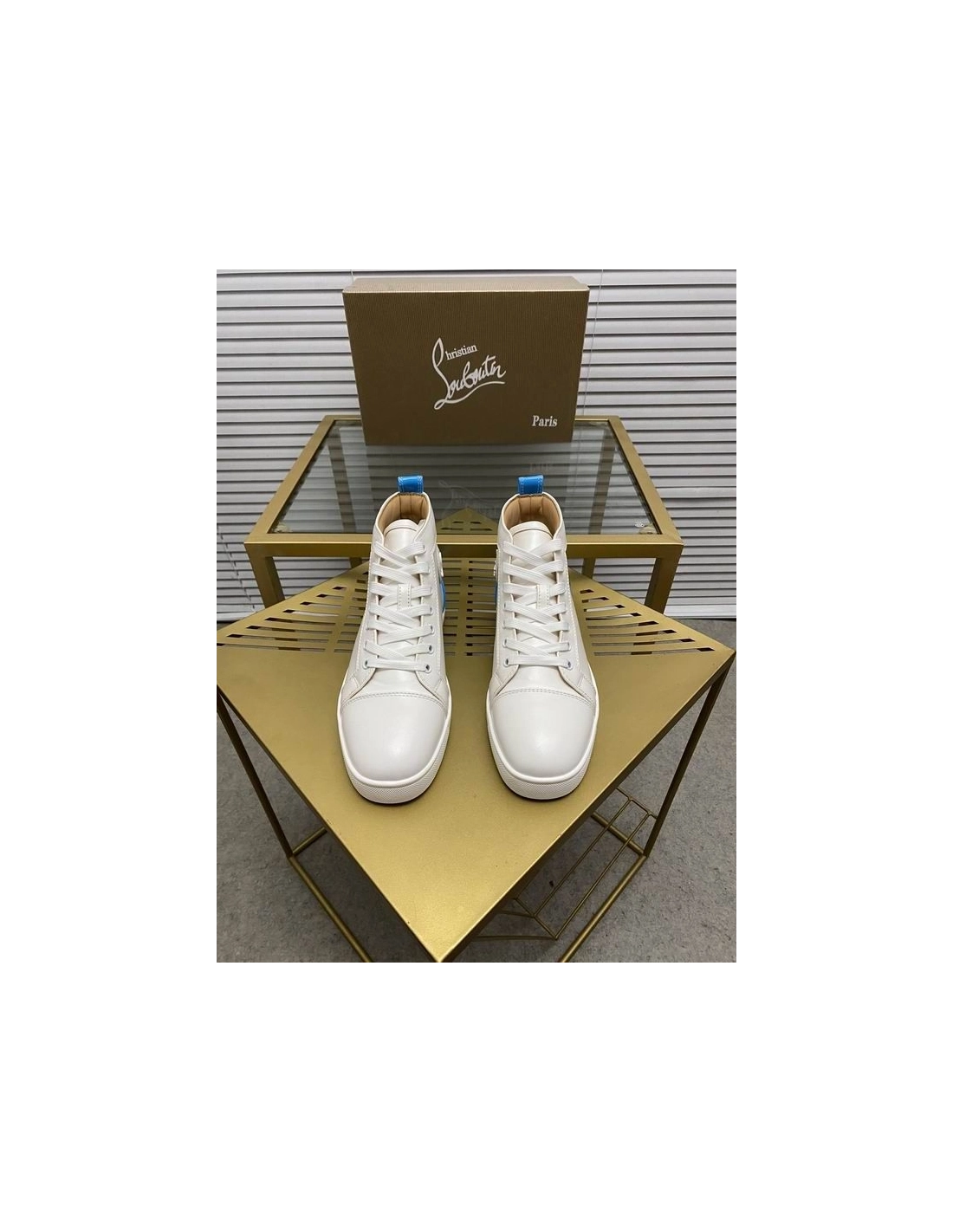 Christian Louboutin Louis High-Top Sneaker Calf White Blue