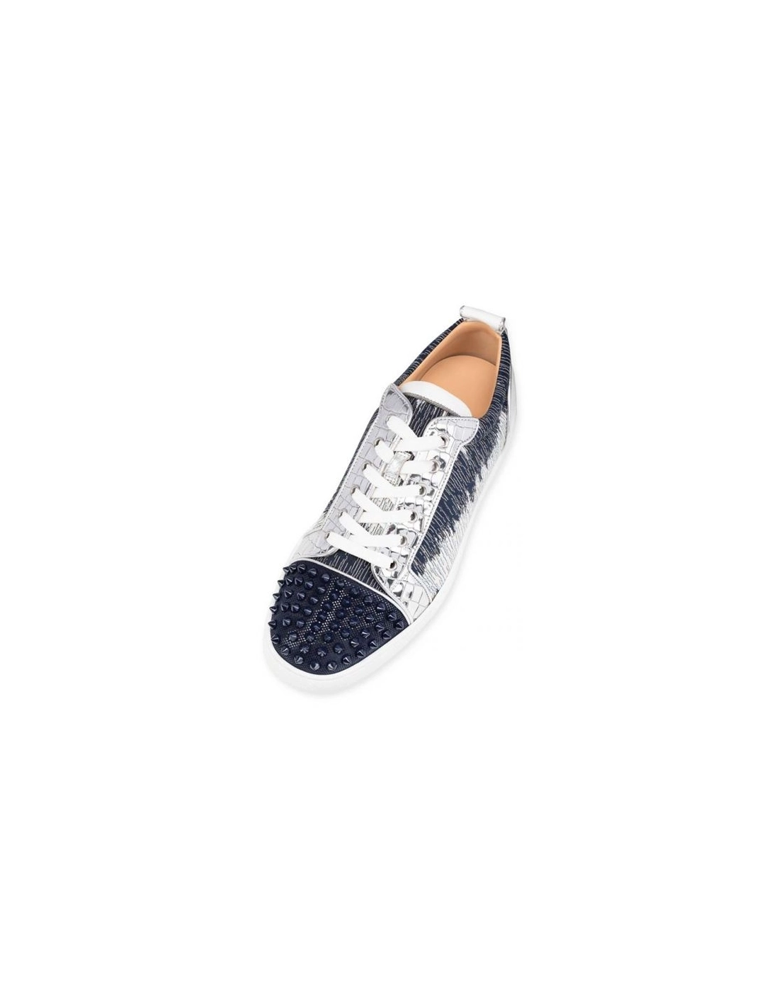 Christian Louboutin Low Top Louis Junior Spikes Orlato Version Blue Ivoire Suede Leather