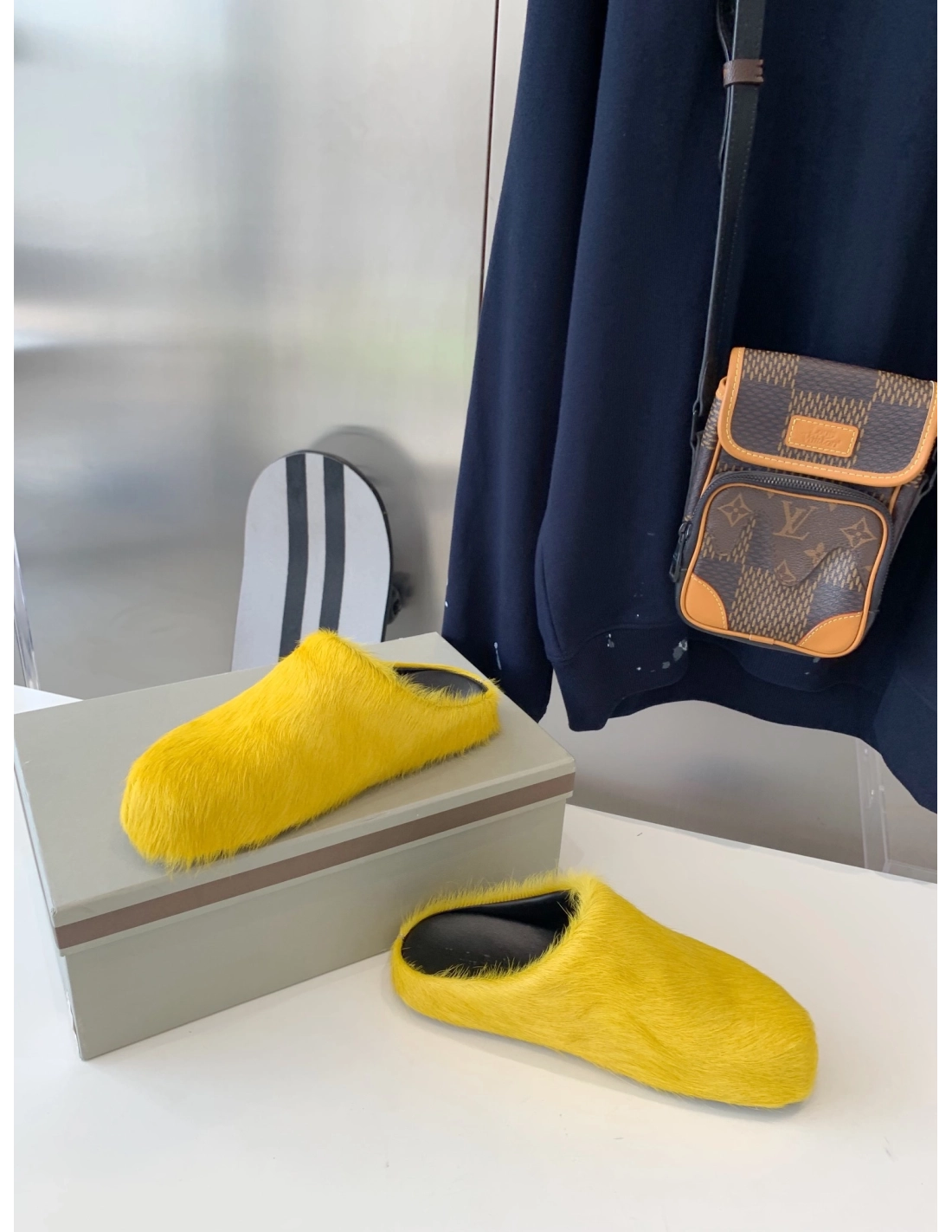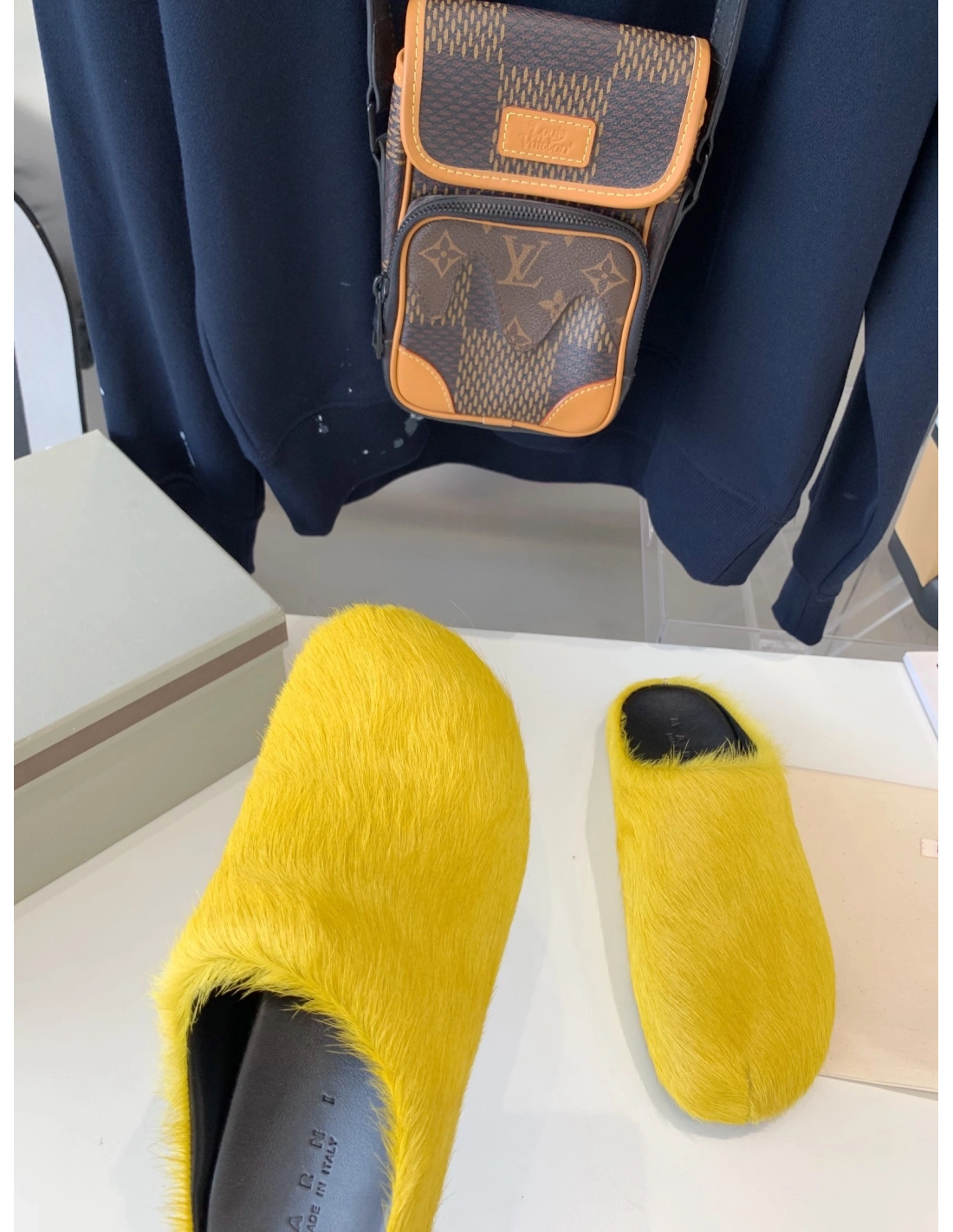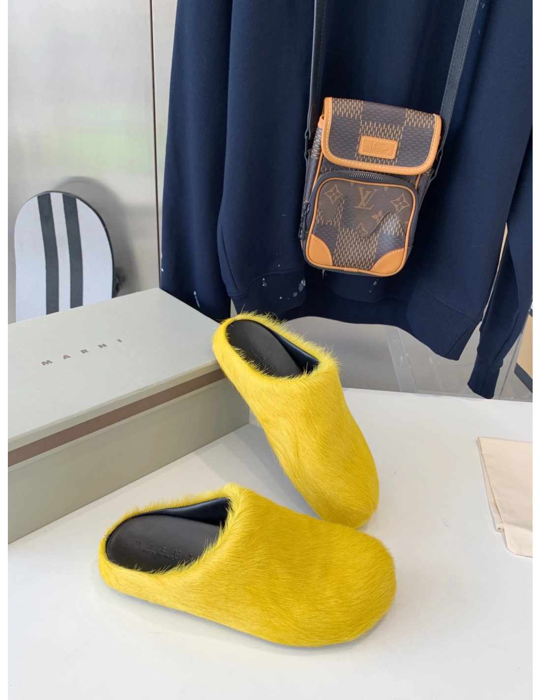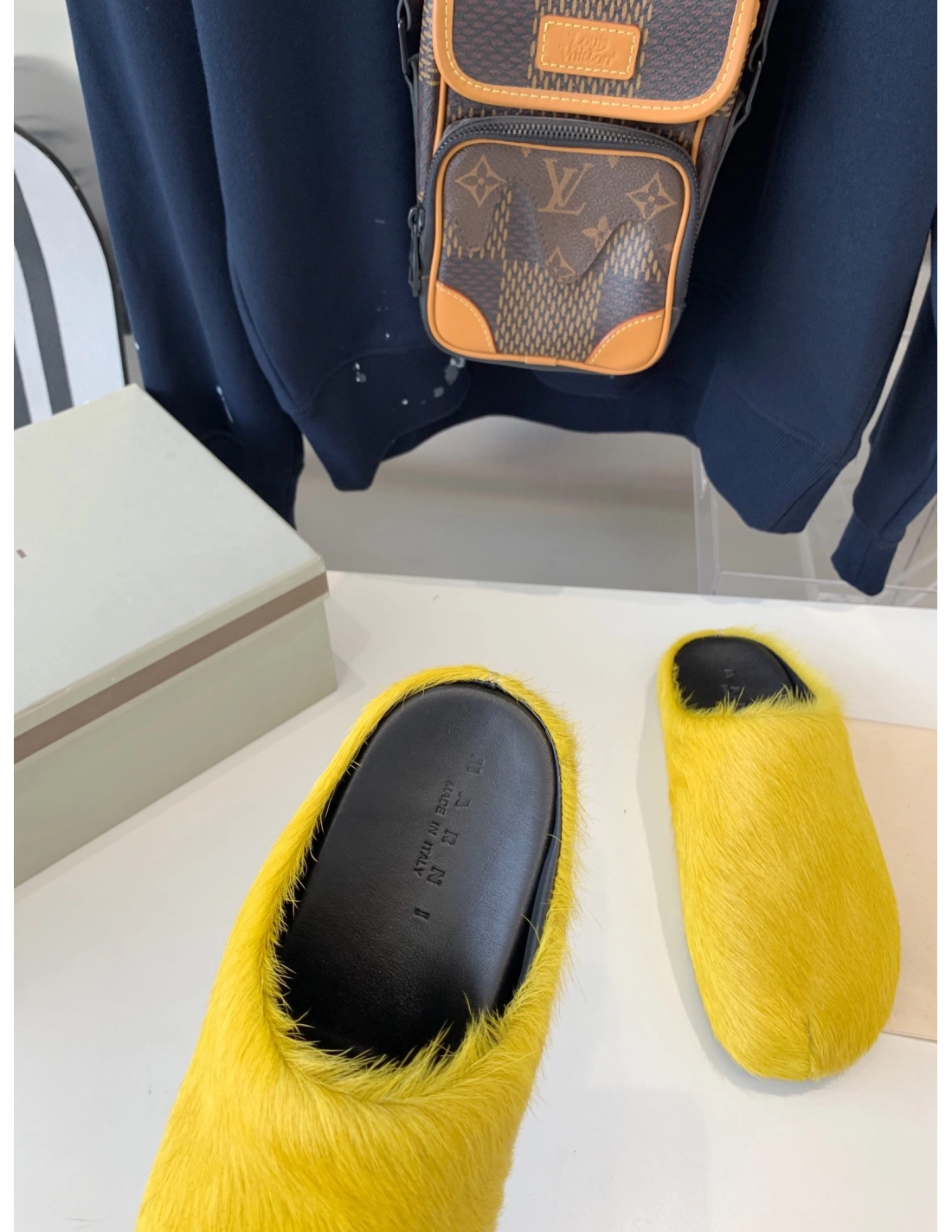 Marni Yellow LONG-HAIR CALFSKIN FUSSBETT SABOT Slide,Marni Slide,Men Sneakers
