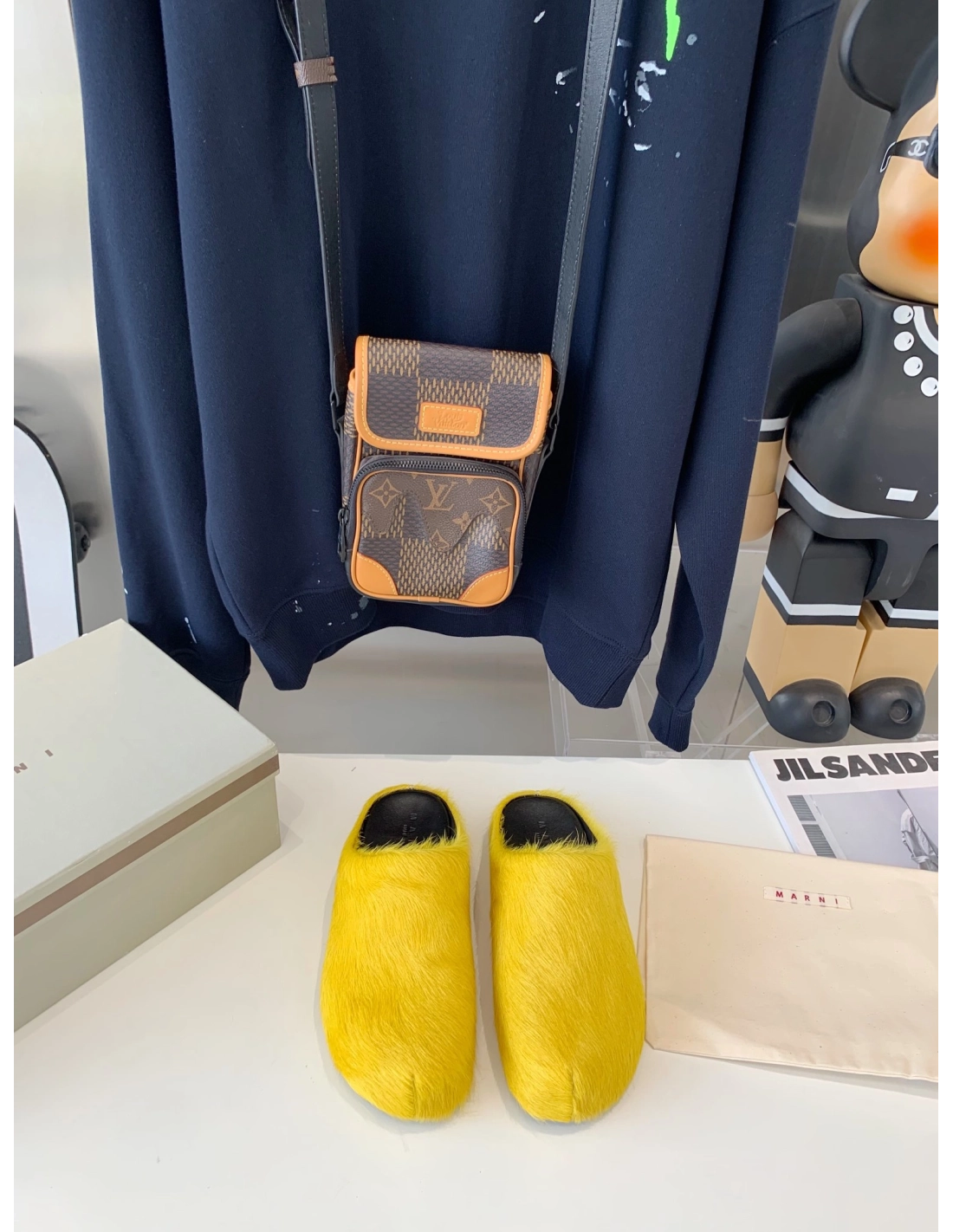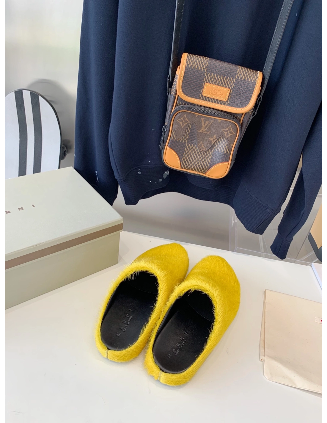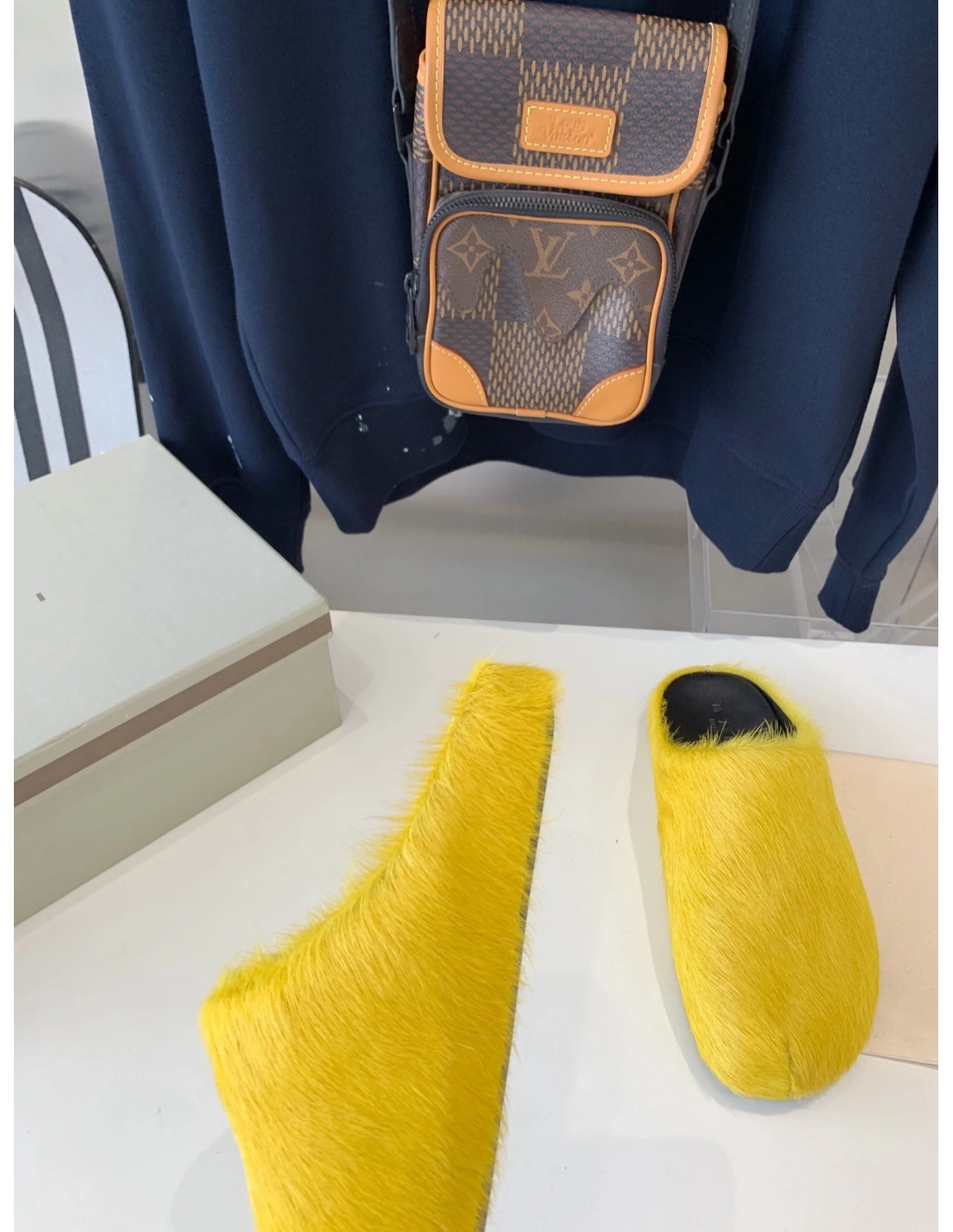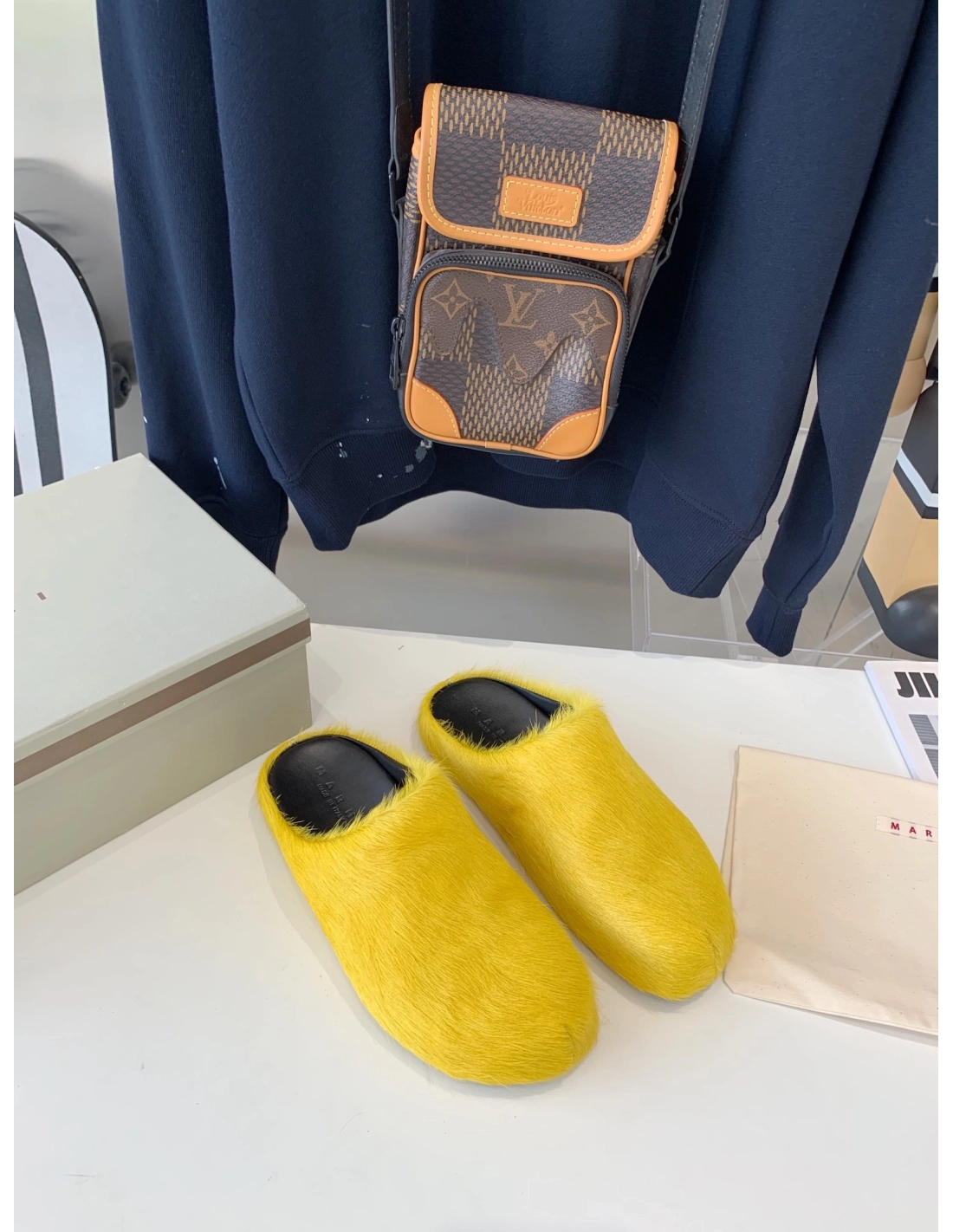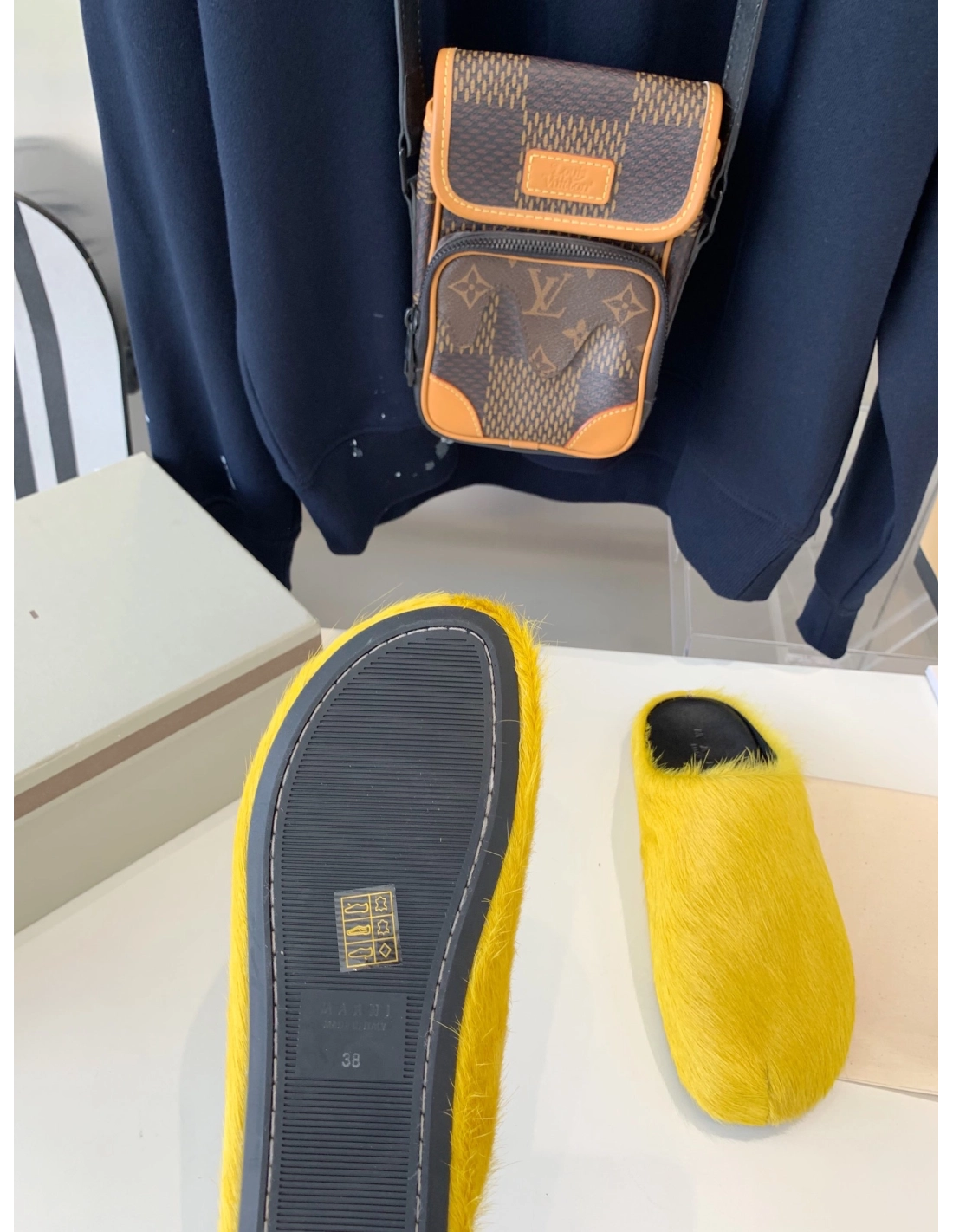 Marni Yellow LONG-HAIR CALFSKIN FUSSBETT SABOT Slide,Marni Slide,Men Sneakers