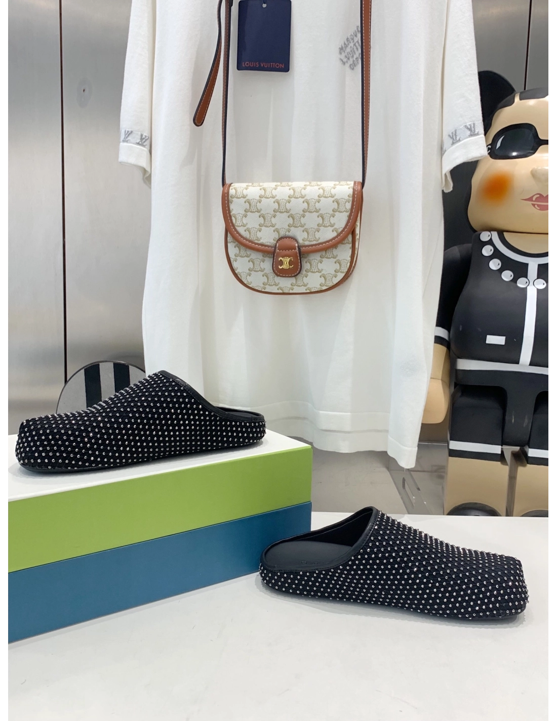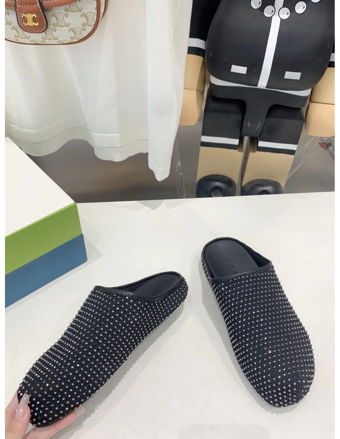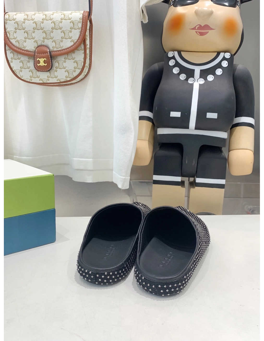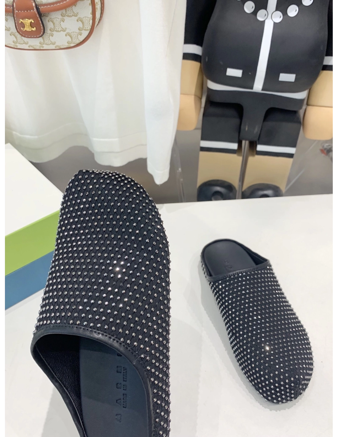 Marni Black leather Fussbett Sabot Slide With Rhinestones,Marni Slide,Men Sneakers