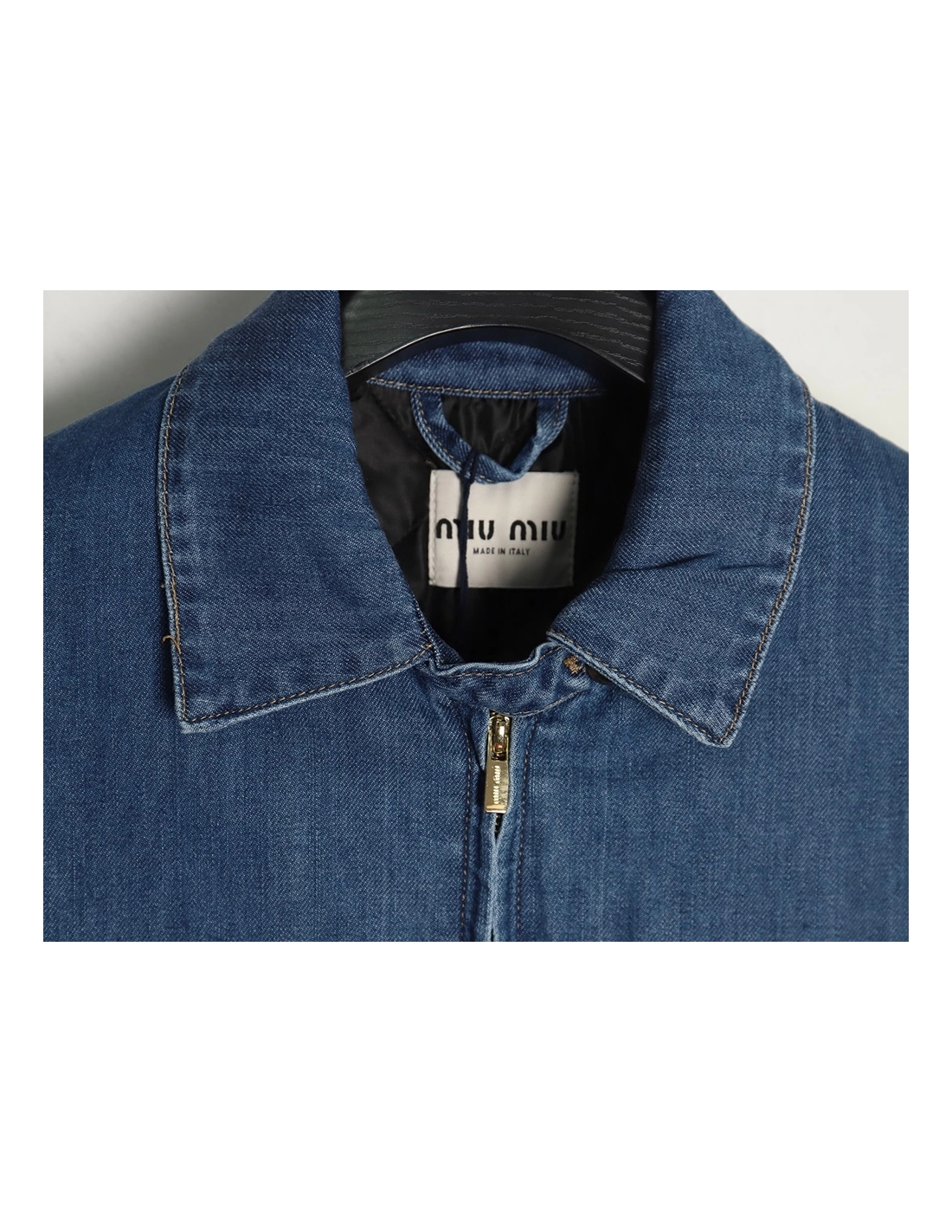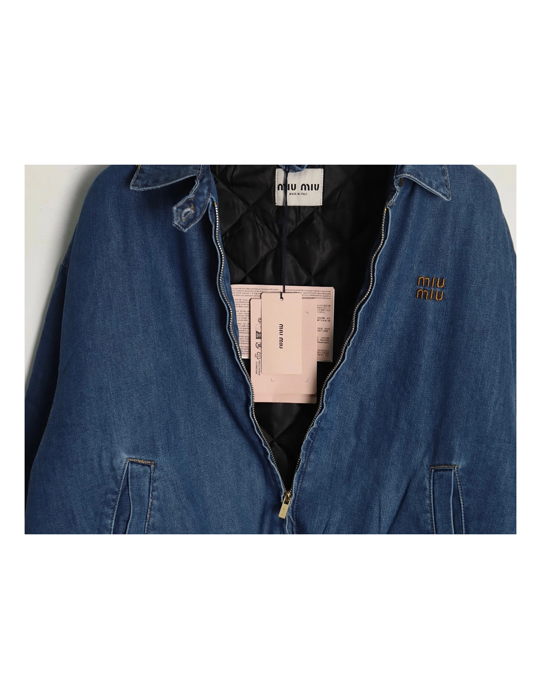 Miu Miu denim down jacket with embroidery