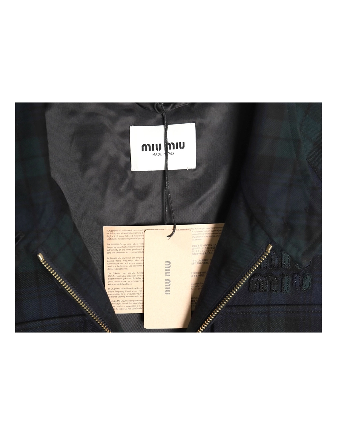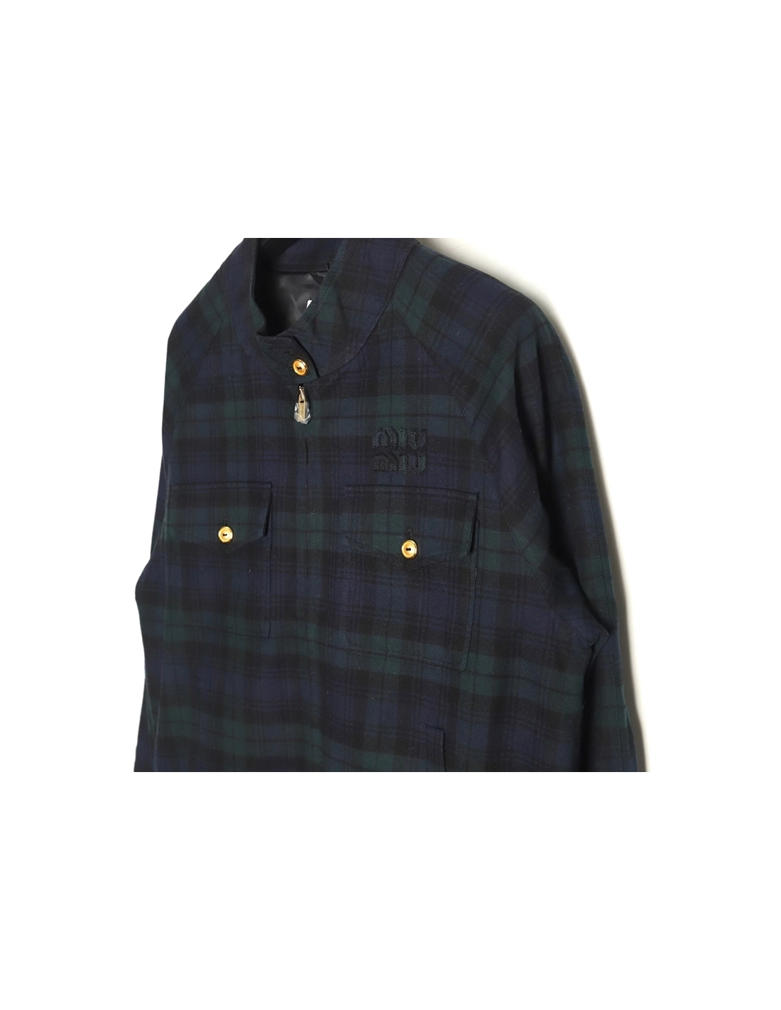 Miu Miu Green Check Wool Plaid Jacket