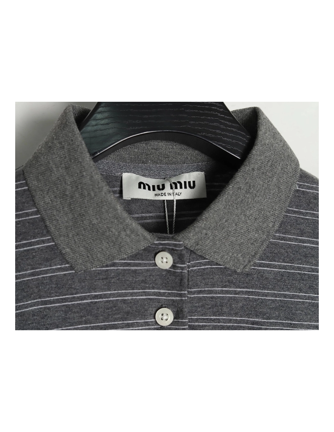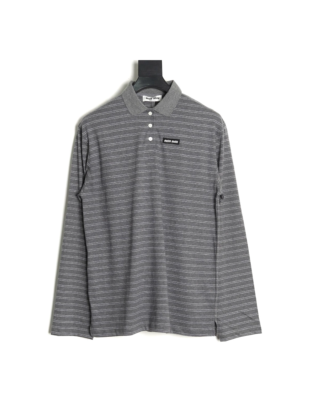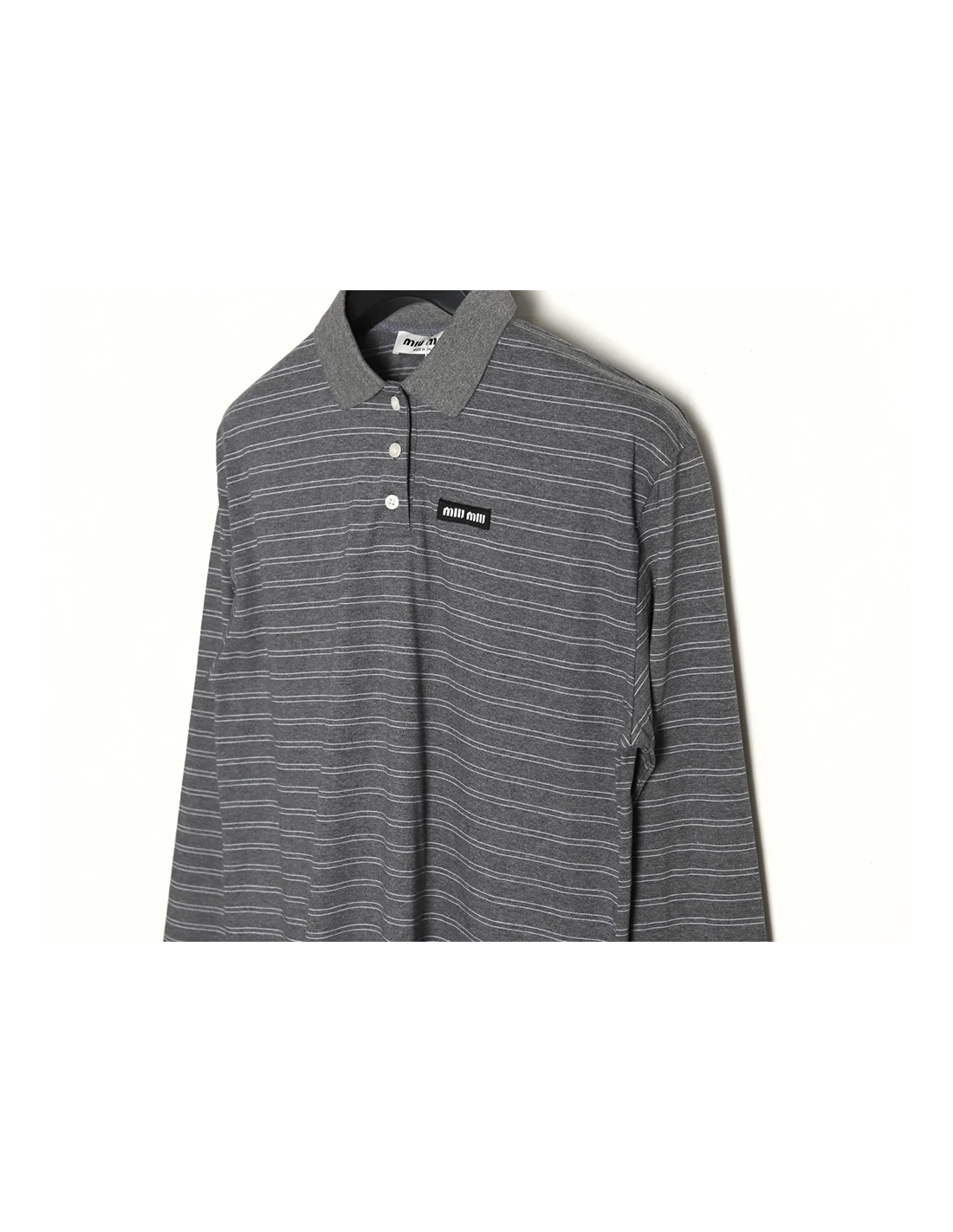 Miu Miu Grey Stripe Logo Long Sleeve Polo Shirt