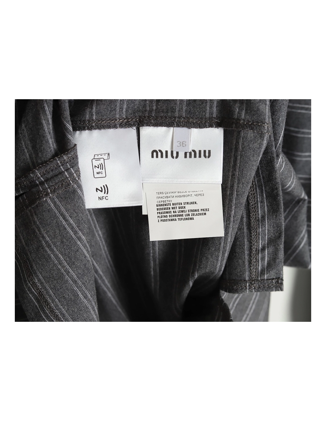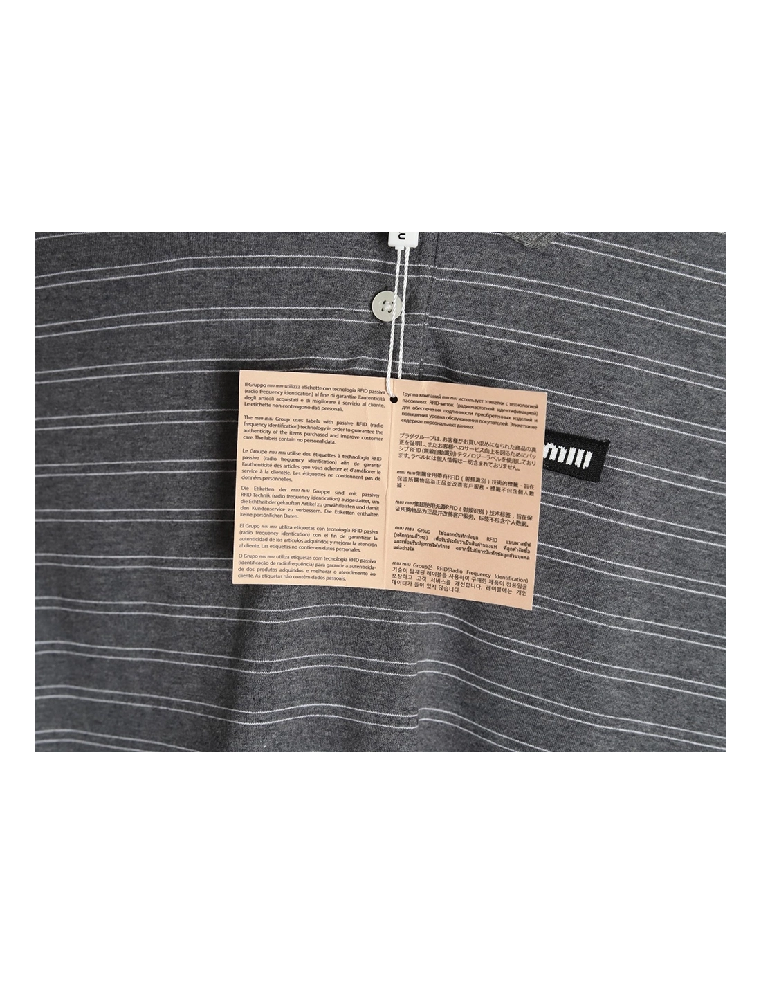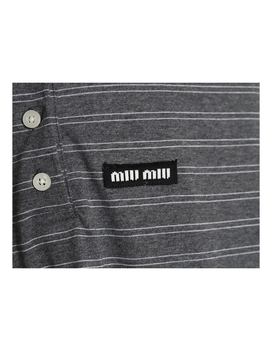 Miu Miu Grey Stripe Logo Long Sleeve Polo Shirt