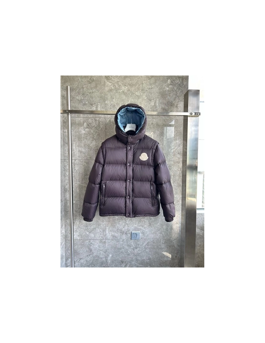 Moncler Cyclone Hooded Detachable Sleeve Down Jacket Brown