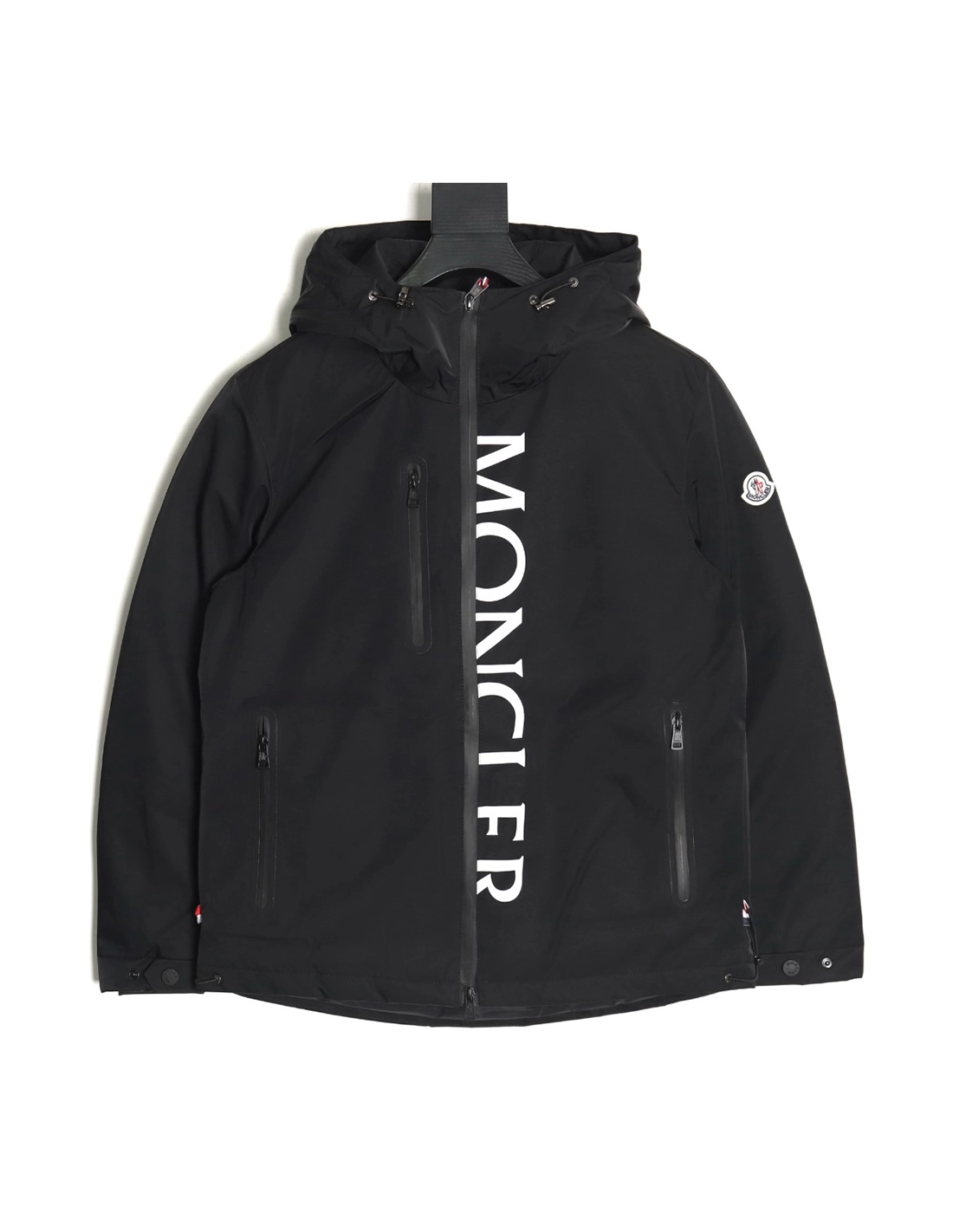Moncler reflective lettering placket down jacket