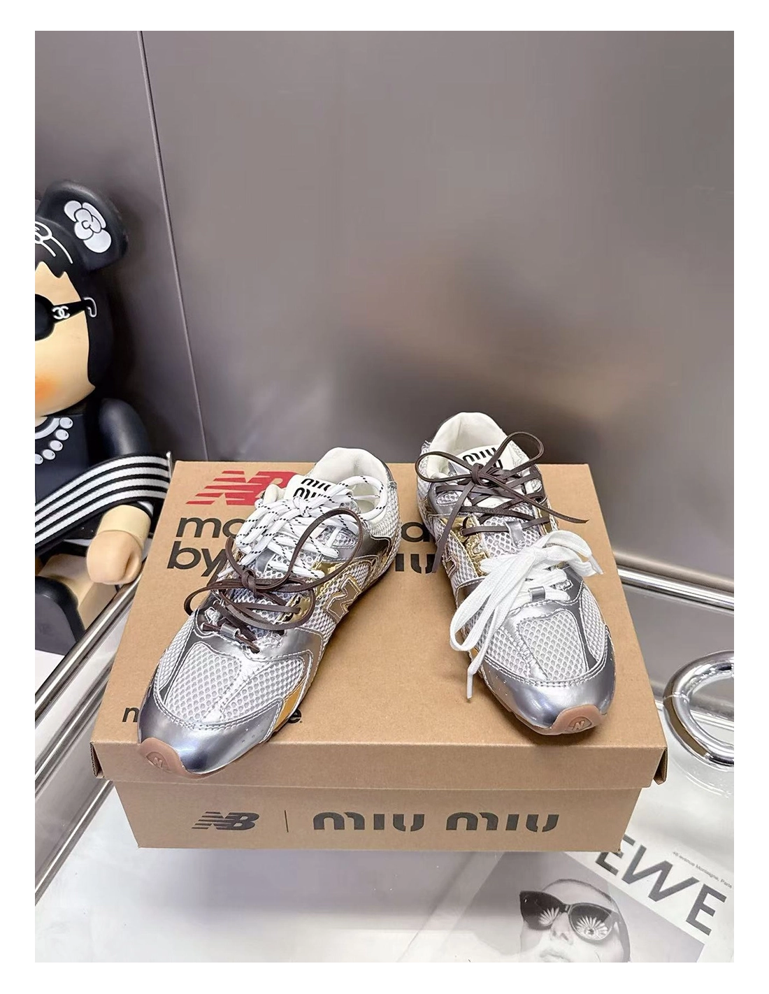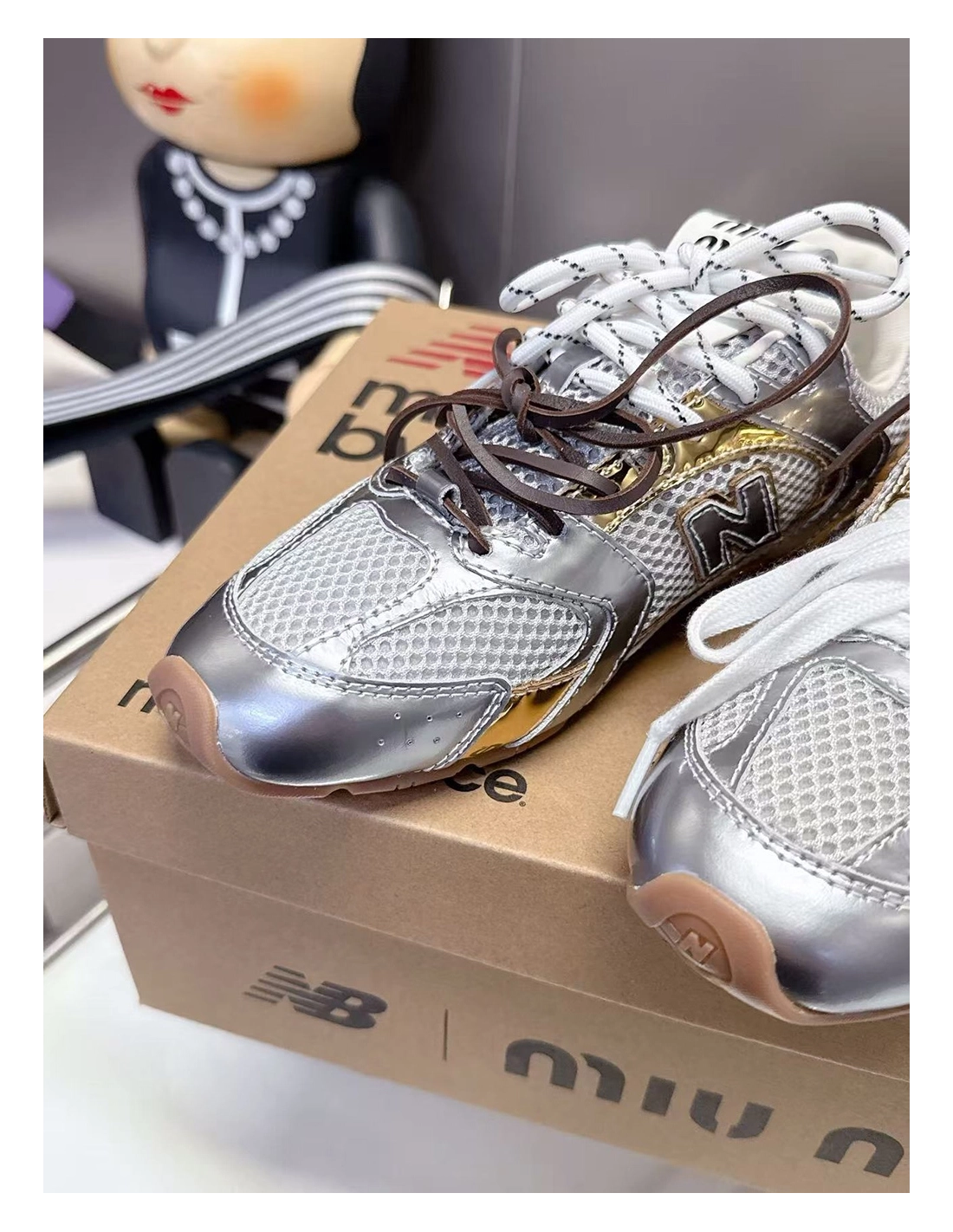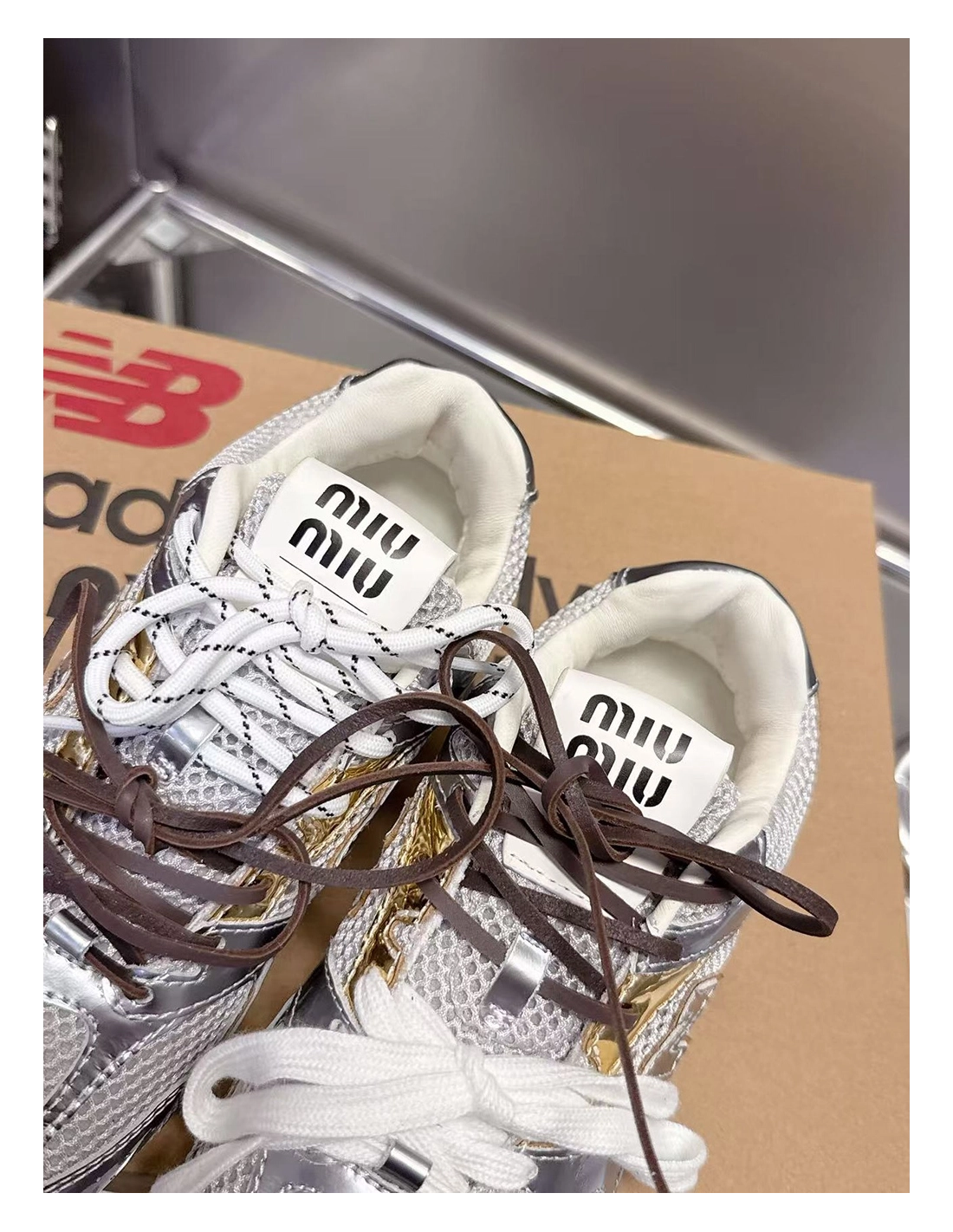 New Balance Miu Miu 530 SL metallic leather and mesh sneakers