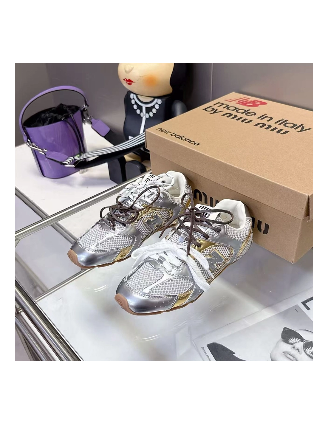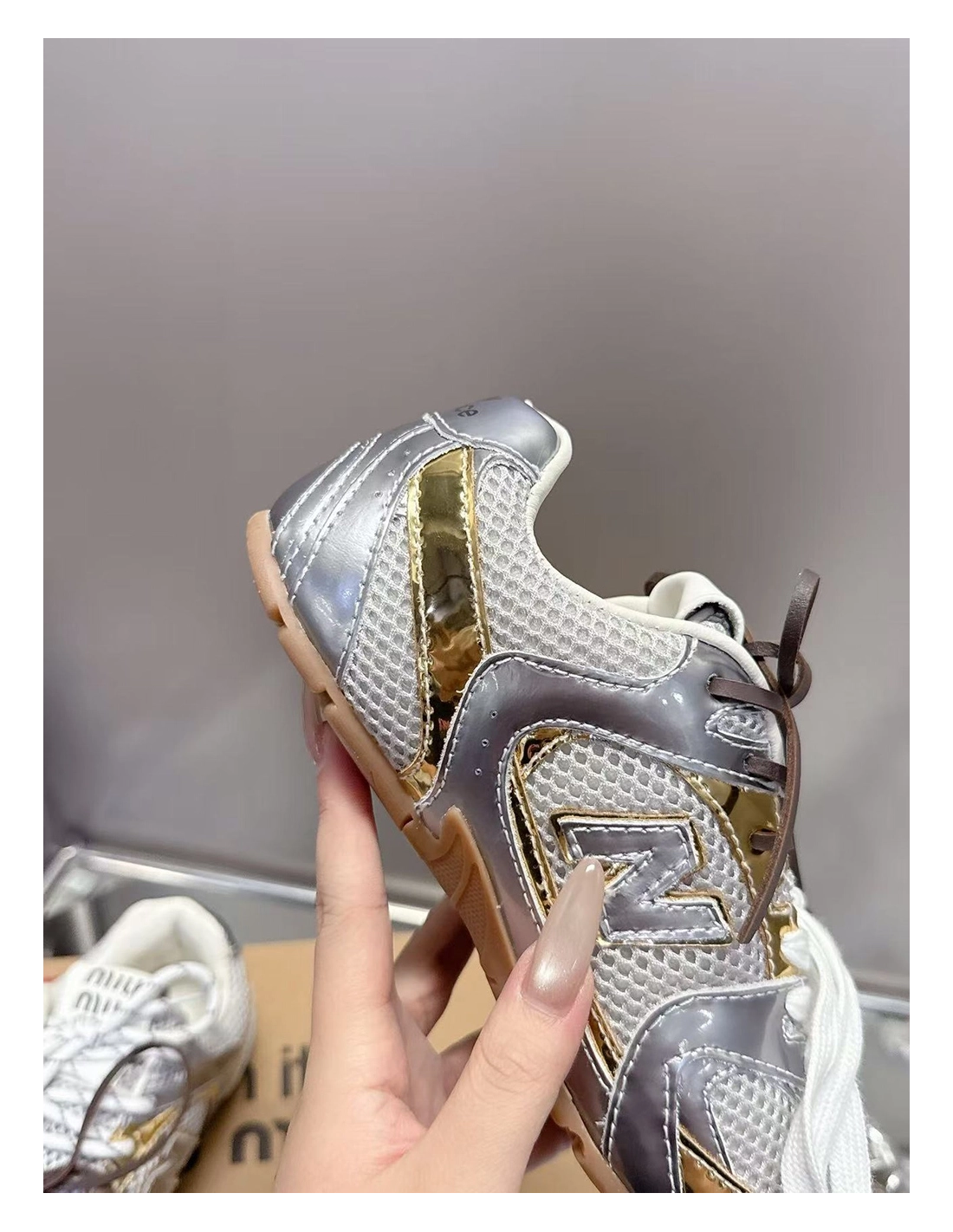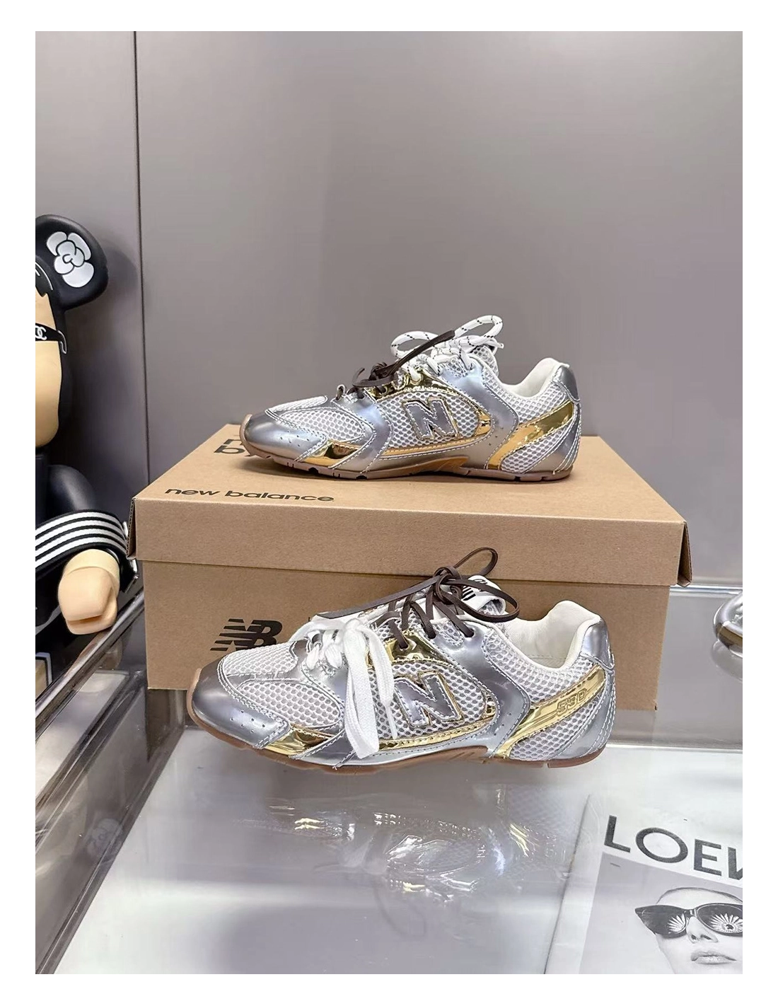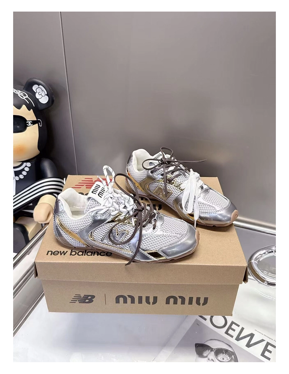 New Balance Miu Miu 530 SL metallic leather and mesh sneakers
