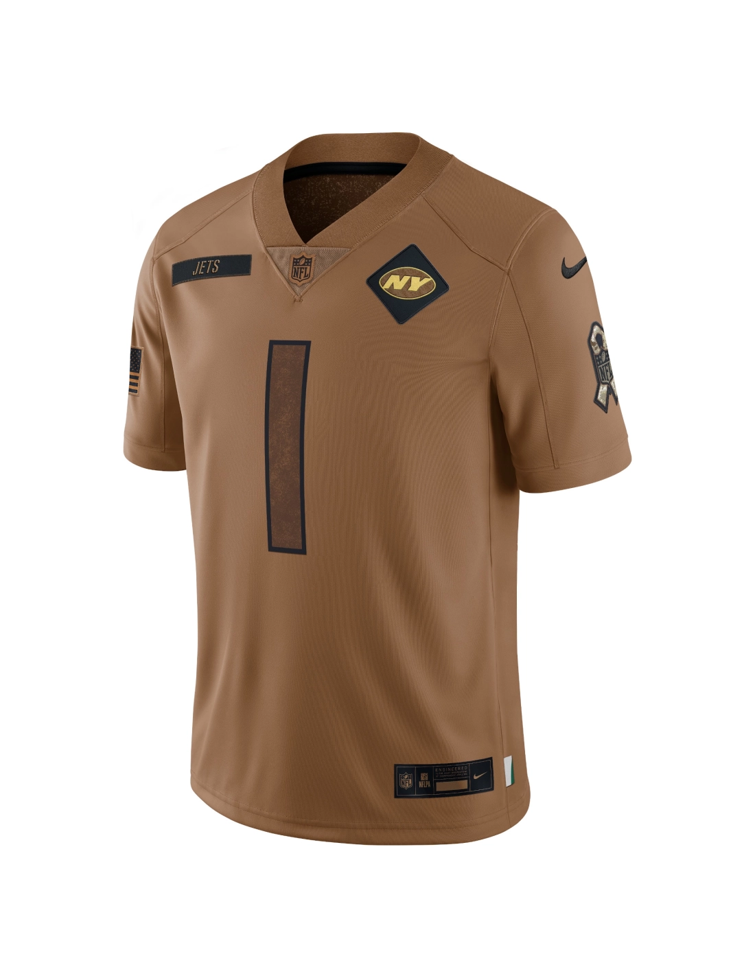 Tonal U.S. flag and NFL Salute to Service ribbon stitched on sleeves