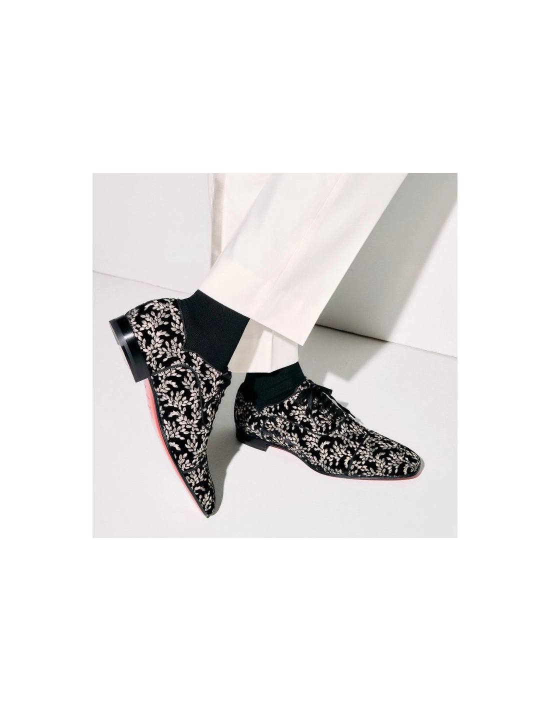 Christian Louboutin Greggy Chick Oxfords Velvet Royal Embroidery Black