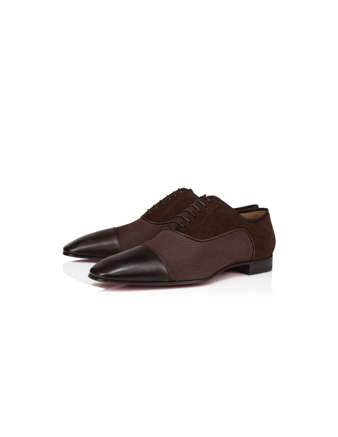 Knockoff Christian Louboutin Ac Greggo Oxfords Calf Leather And Polo Fabric Cosme is constructed from a combination of textures and fabrics. Calf leather, polo fabric and veau velours fuse to offer an eye-catching men's shoe with a sleek rounded toe for ultimate elegance when formal attire is required. This timeless style is modelled with a lace-up vamp and finished with the signature Maison Christian Louboutin Loubi red sole.