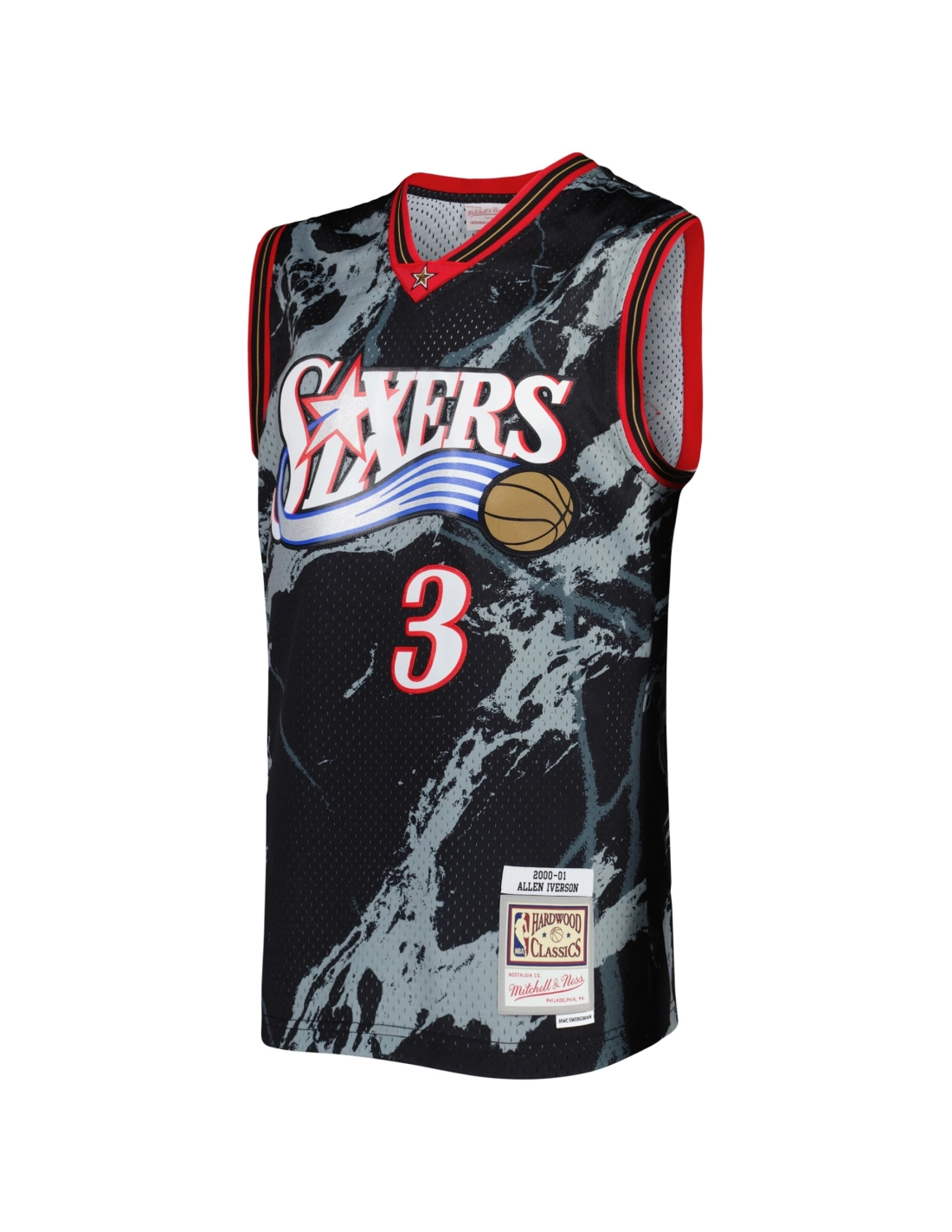 Mens Philadelphia 76ers Allen Iverson Black 2000/01 Hardwood Classics Marble Swingman Jersey