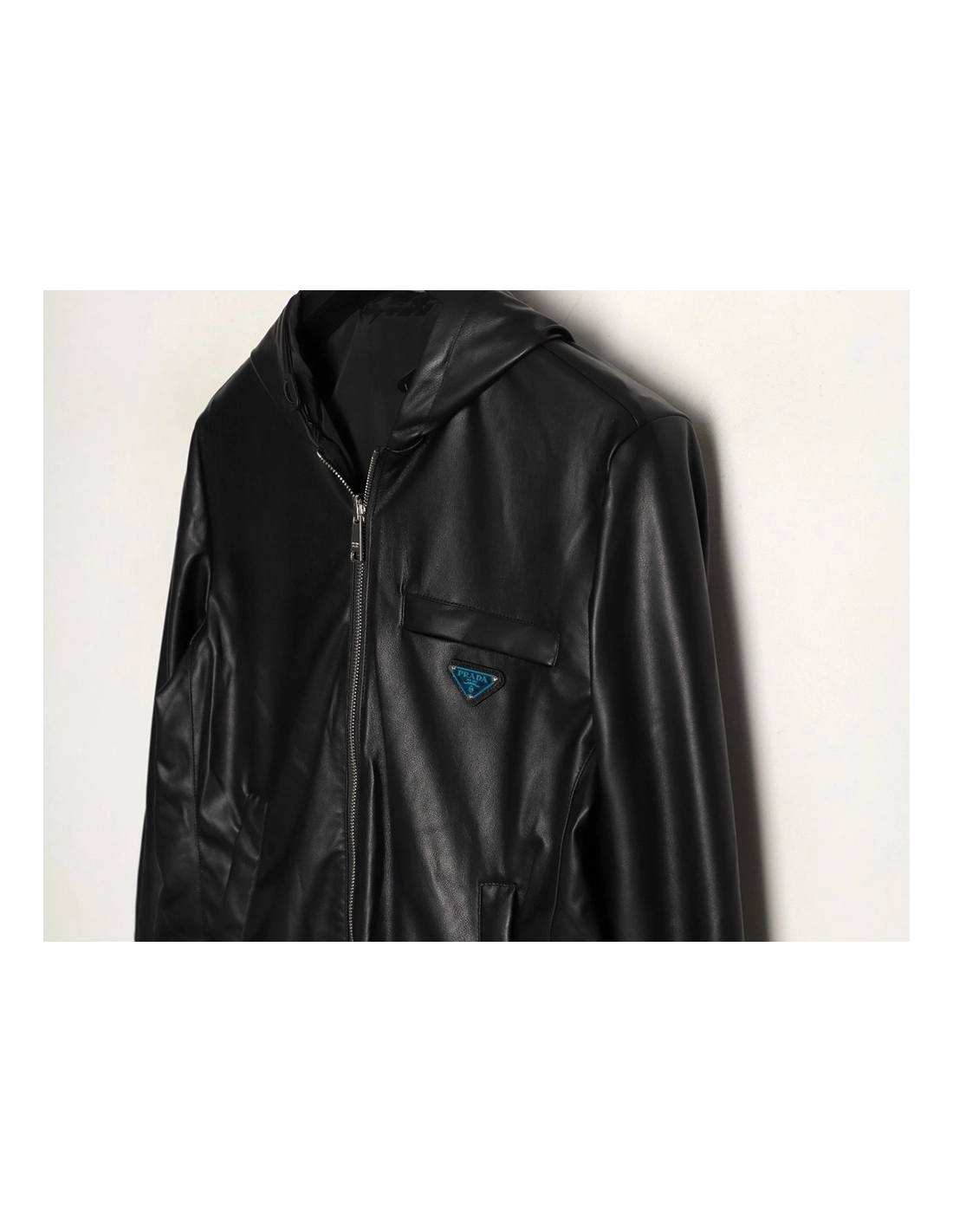 Prada Reversible Leather Nylon Hooded Jacket