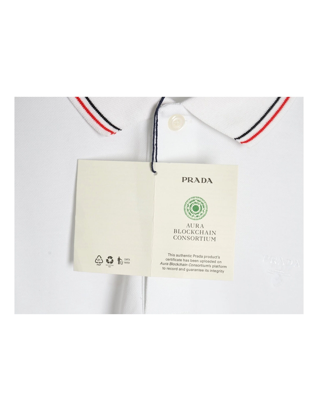 Prada small embroidered logo red edge shortsleeved polo shirt