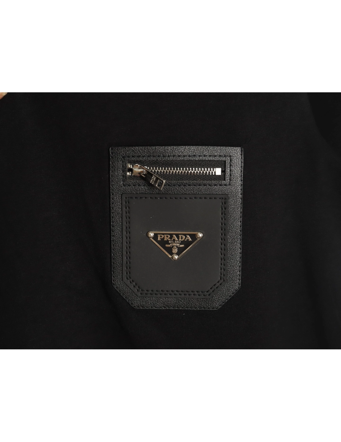 Prada triangle logo leather tag pocket short sleeves