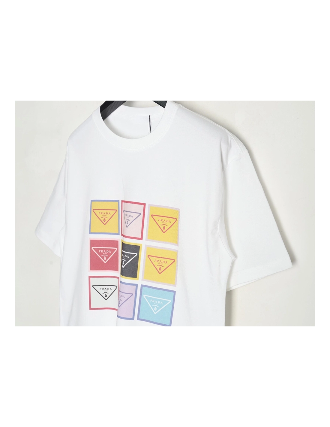 Prada Ninegrid Square Letter Round Neck Short Sleeve
