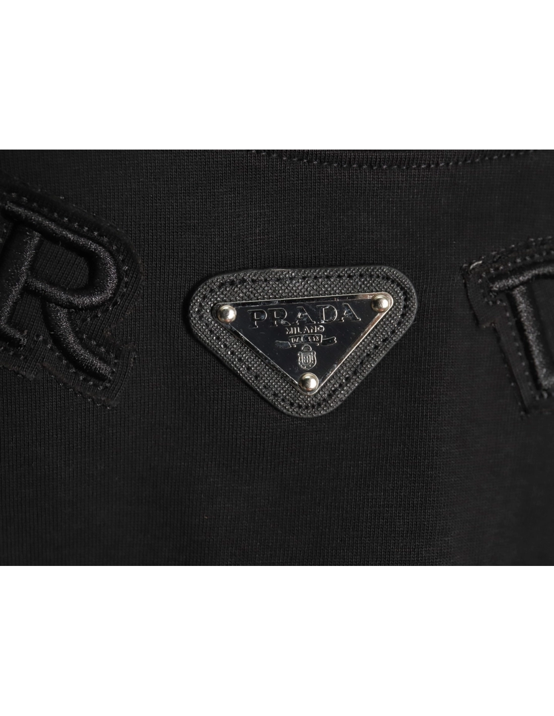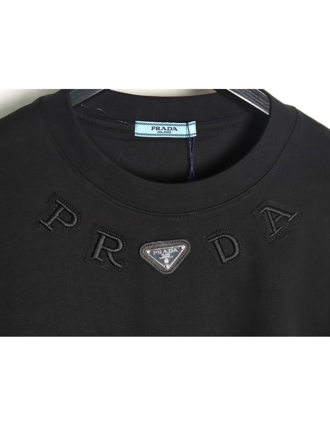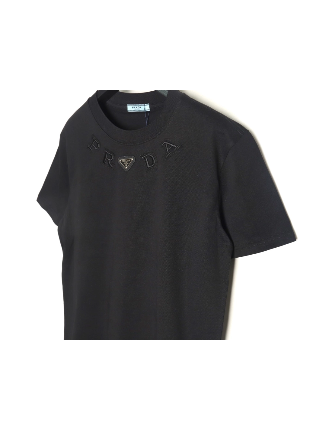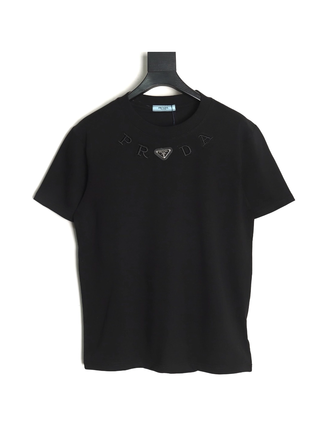 Prada neckline letter embroidery triangle logo short sleeves