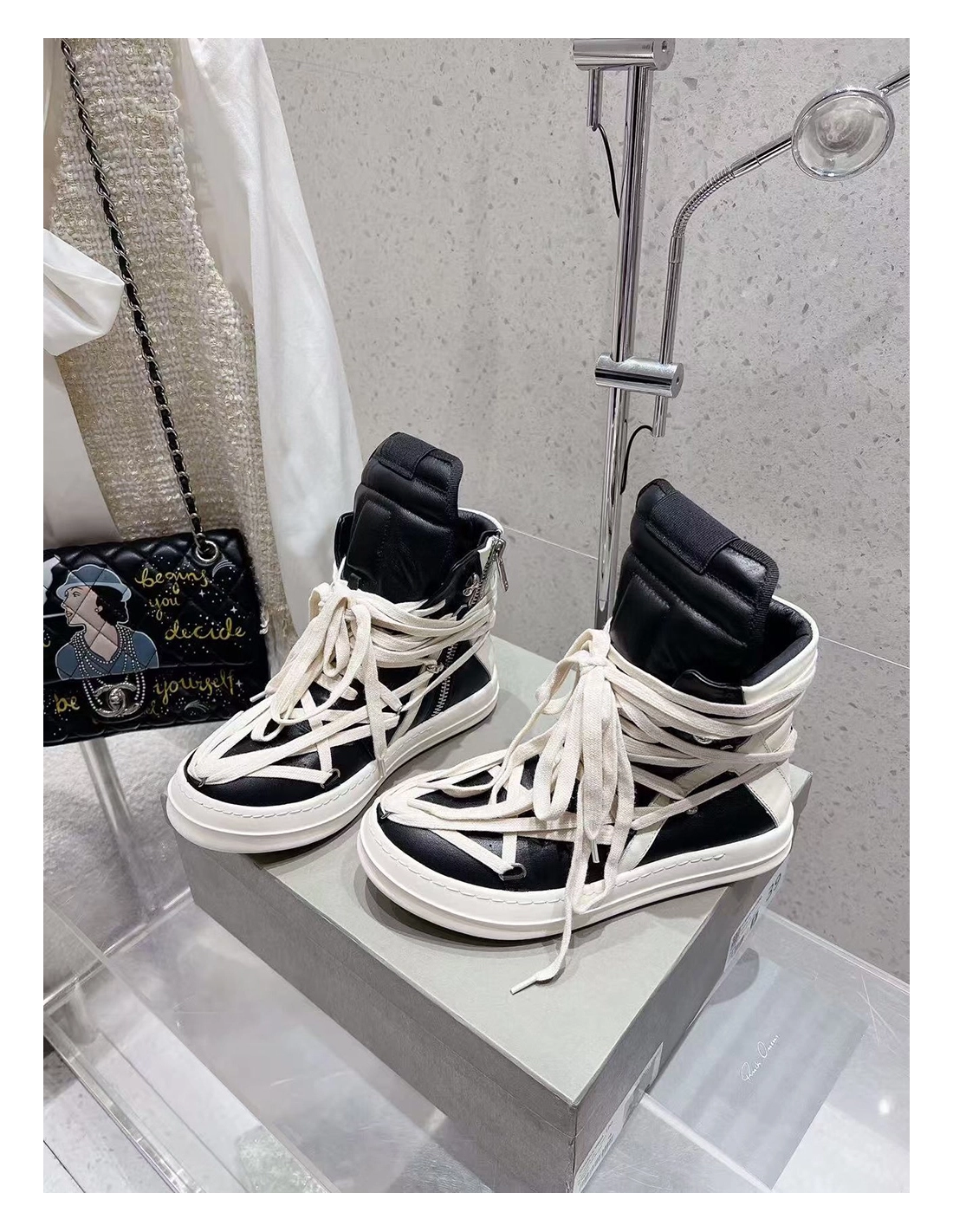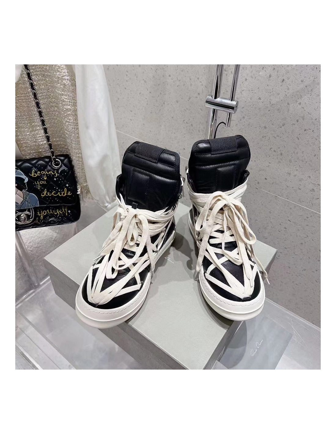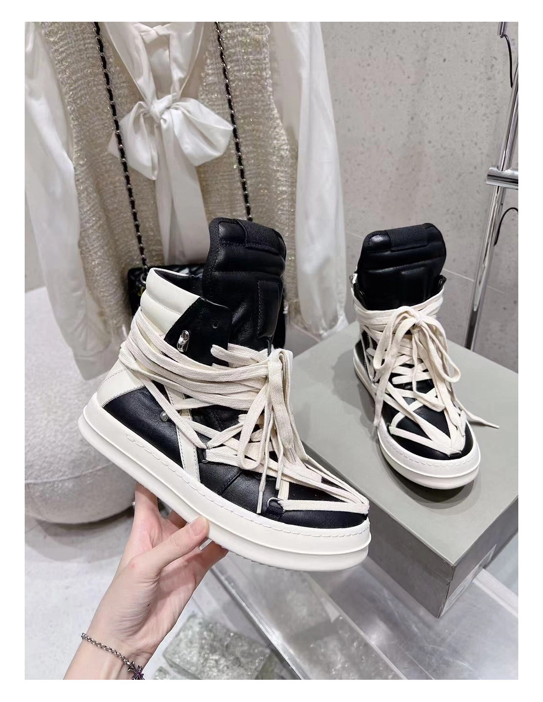 Rick Owens Geobasket Black Chalk White