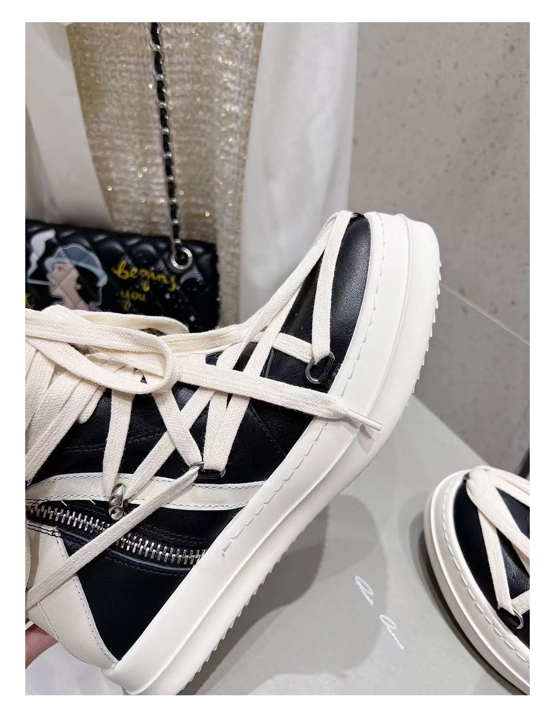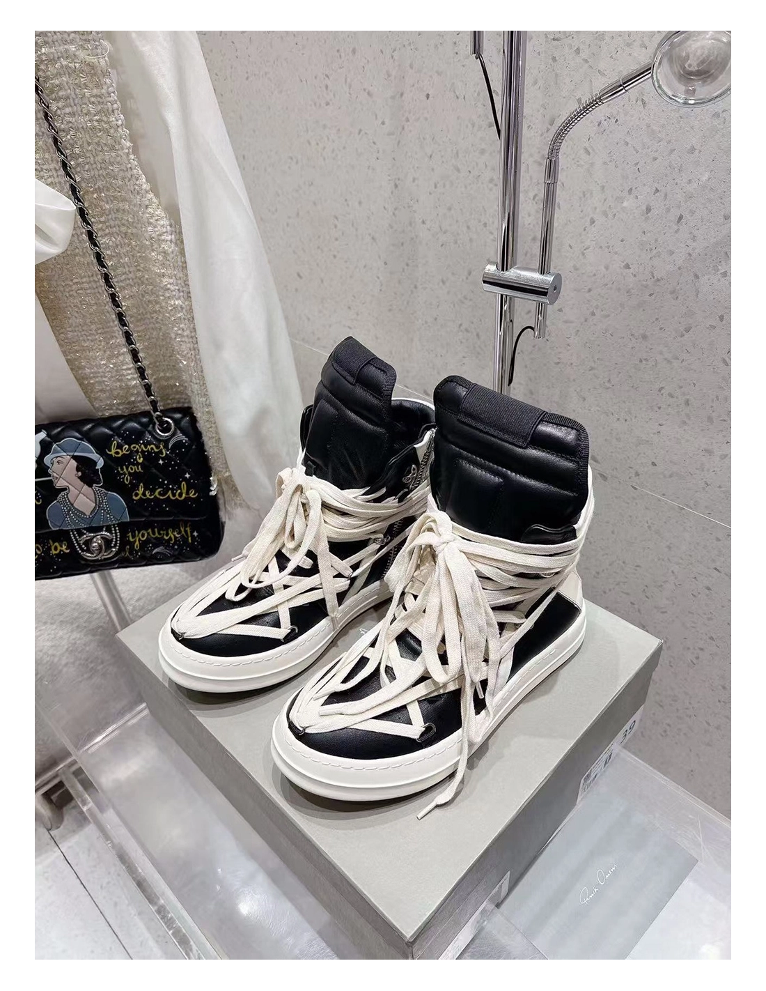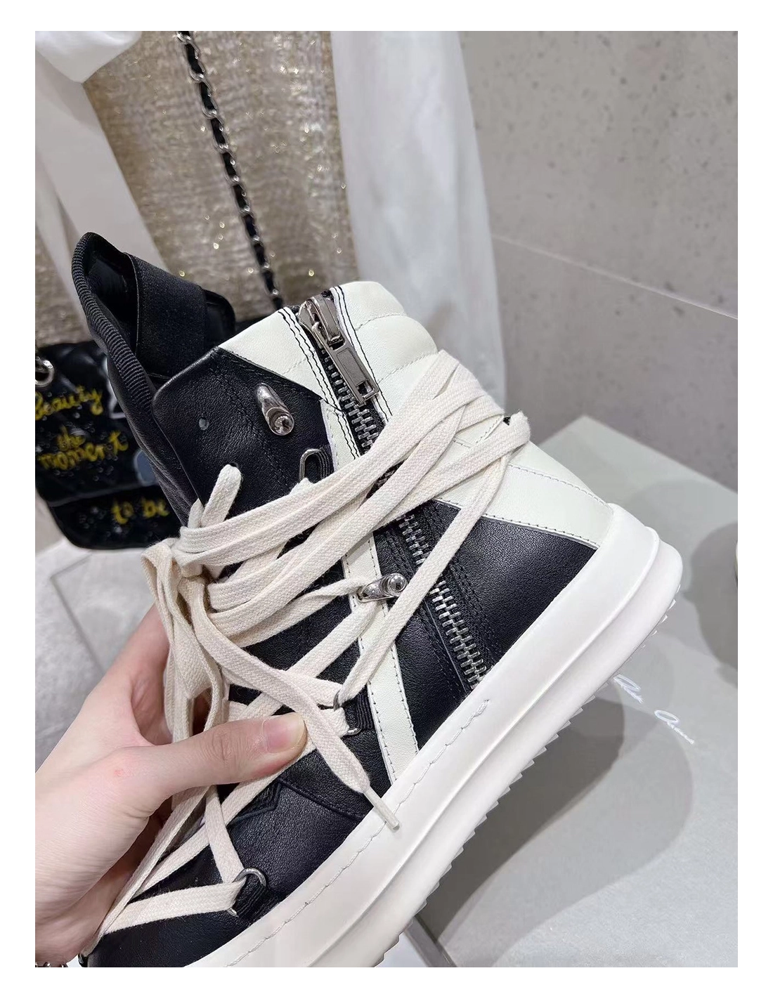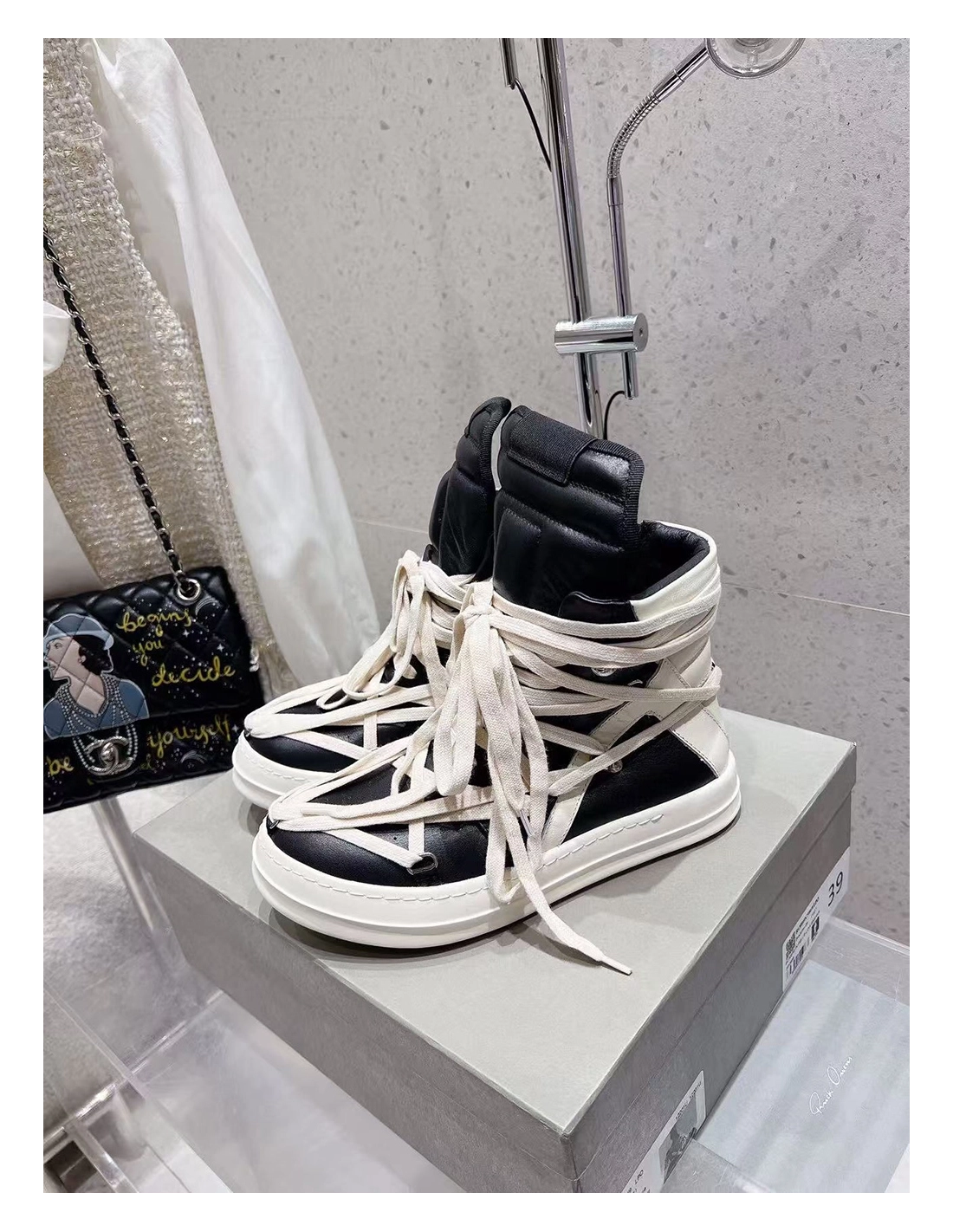 Rick Owens Geobasket Black Chalk White