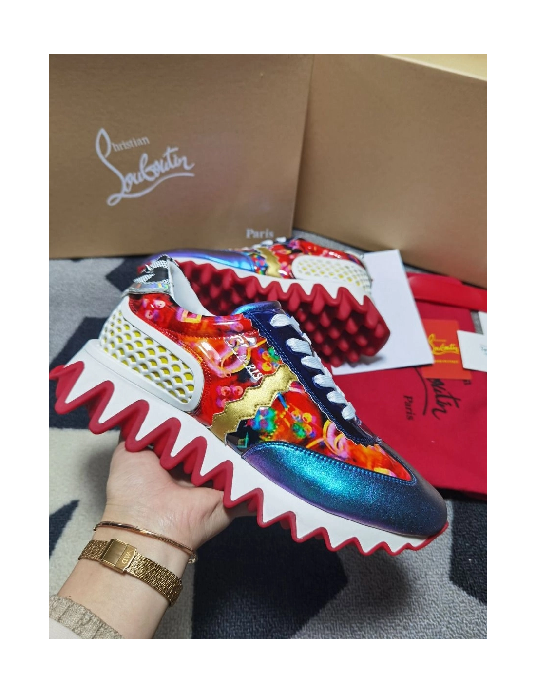 Cheap Christian Louboutin Loubishark Donna Flat Men Sneakers Mixed-print Multicolor for Sale