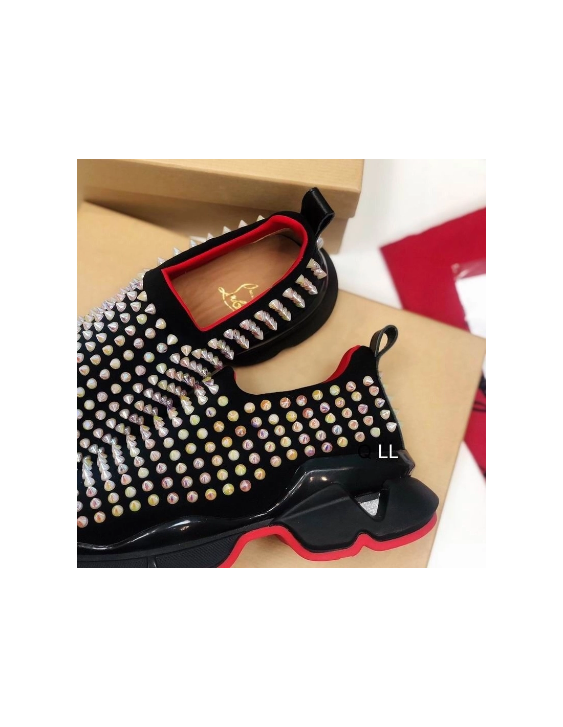 Christian Louboutin Spike Sock Sneakers Neoprene Black Multicolor Spikes
