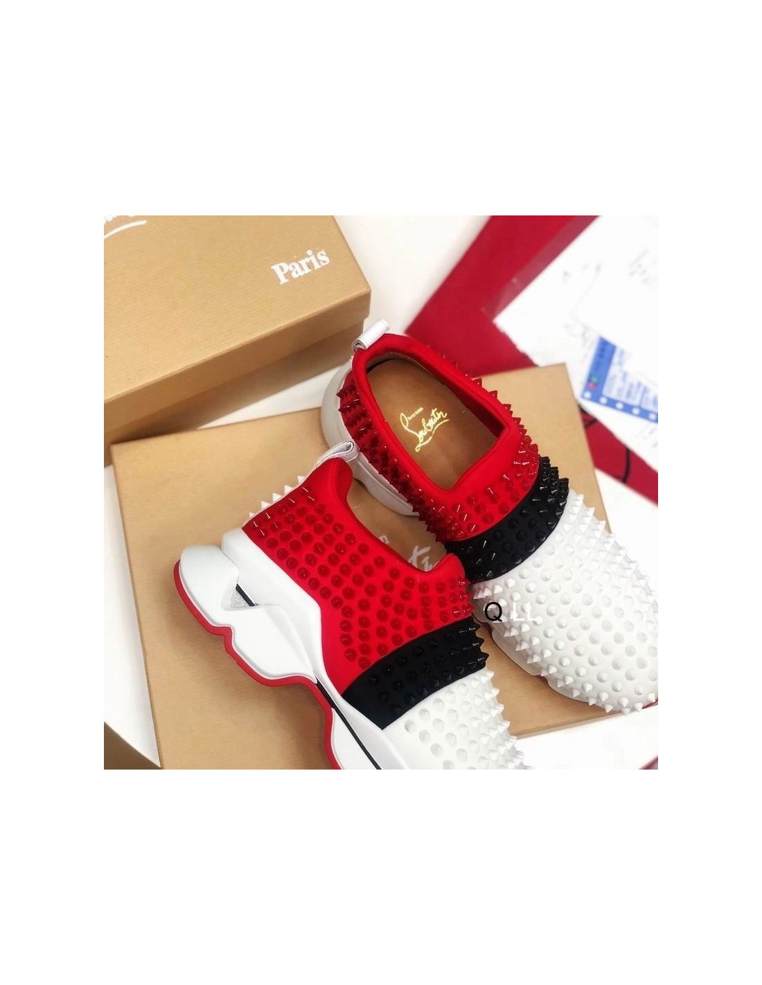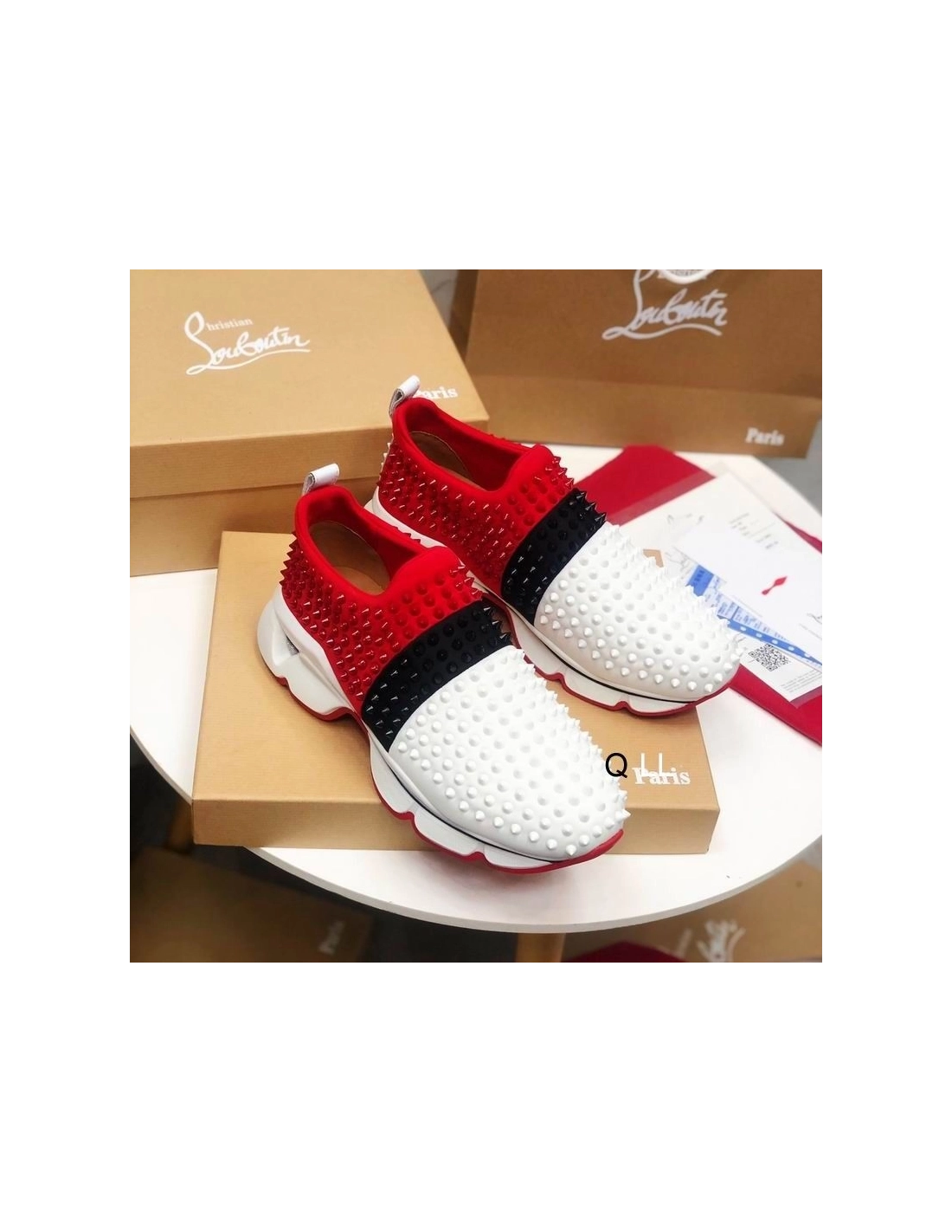 Christian Louboutin Spike Sock Sneakers Neoprene Multicolor