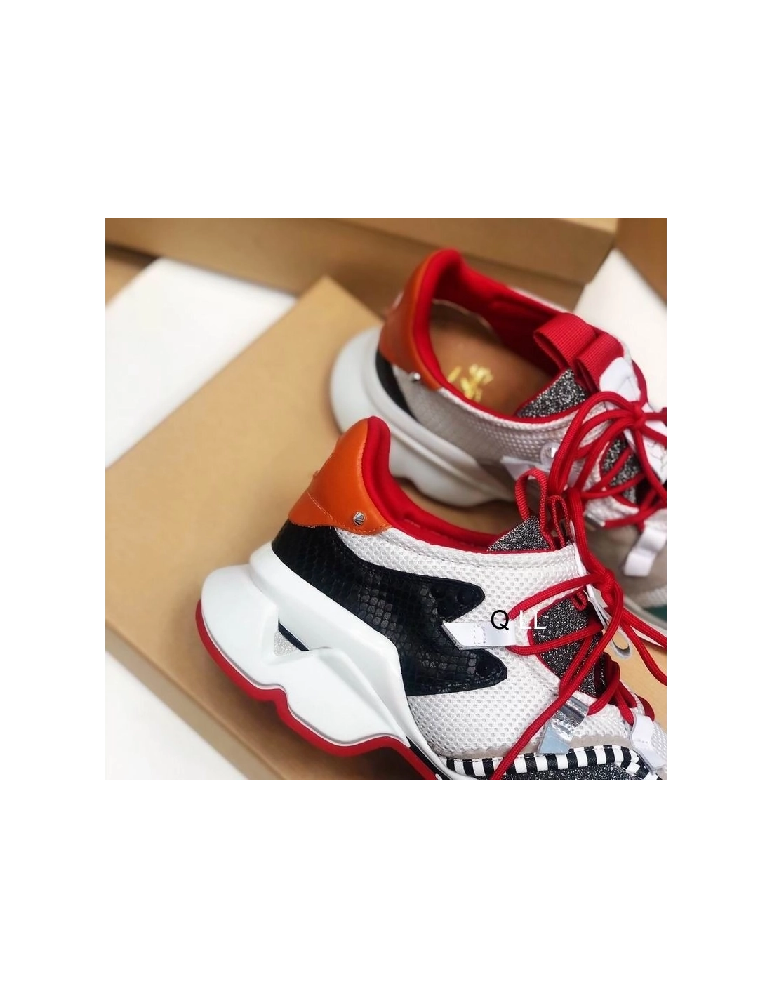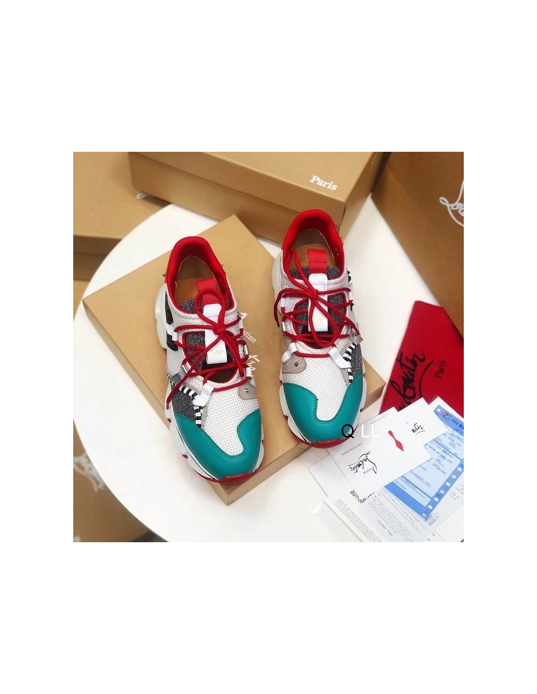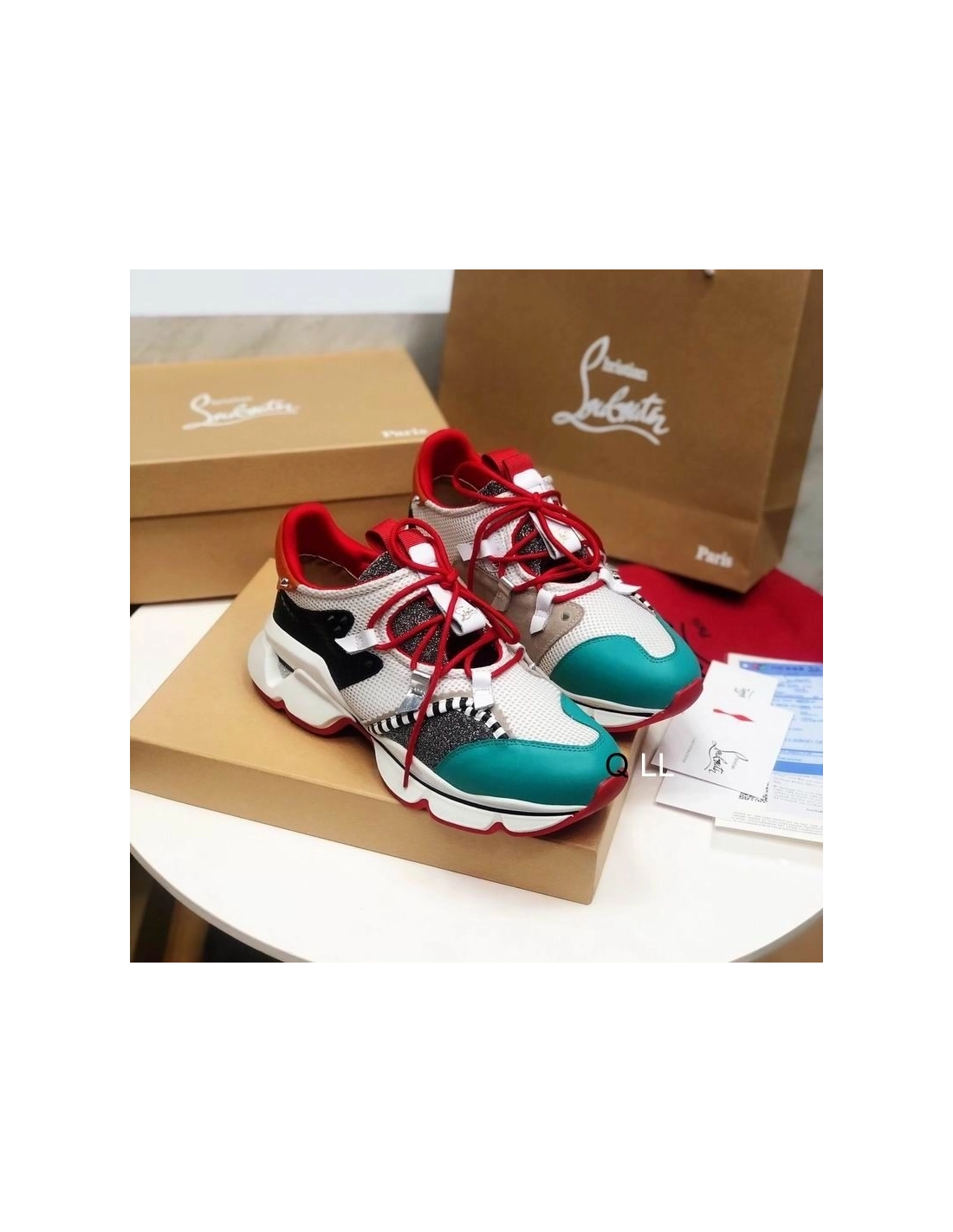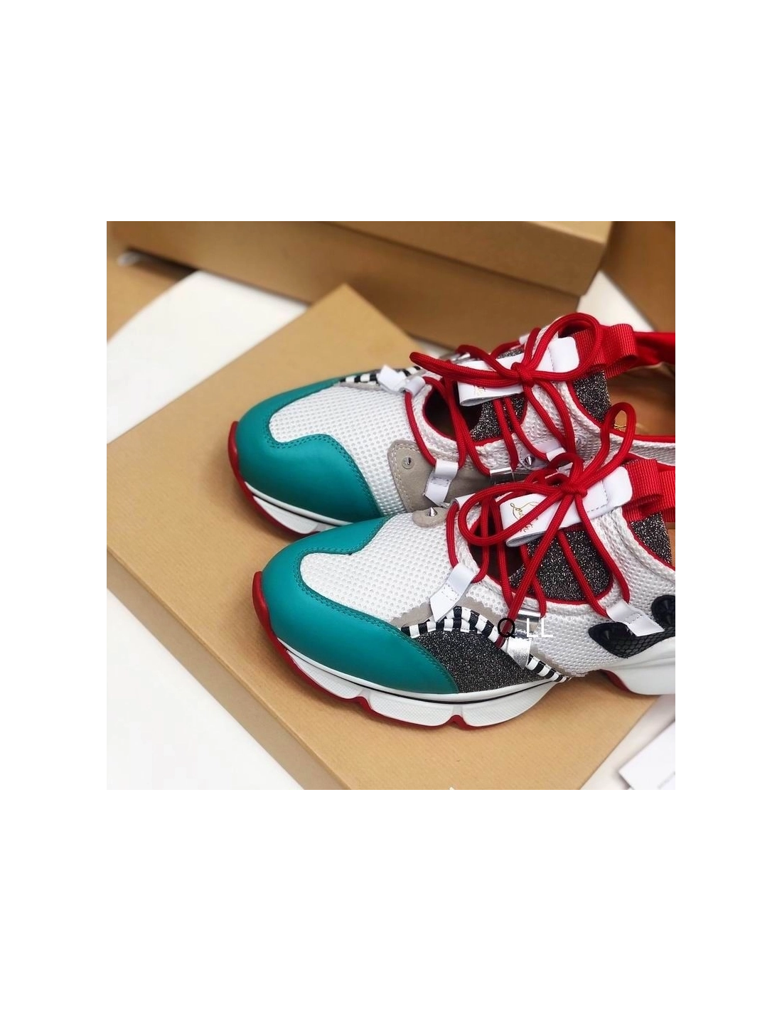 Christian Louboutin Red Runner Flat Sneakers Glitter Leather Mesh Multicolor